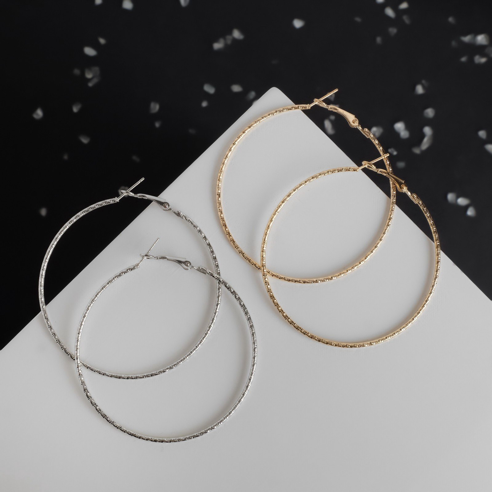 Серьги-кольца "Рельеф", миксы, d=5.7 см, 5.7x5.7x0.2 см., QF, Китай