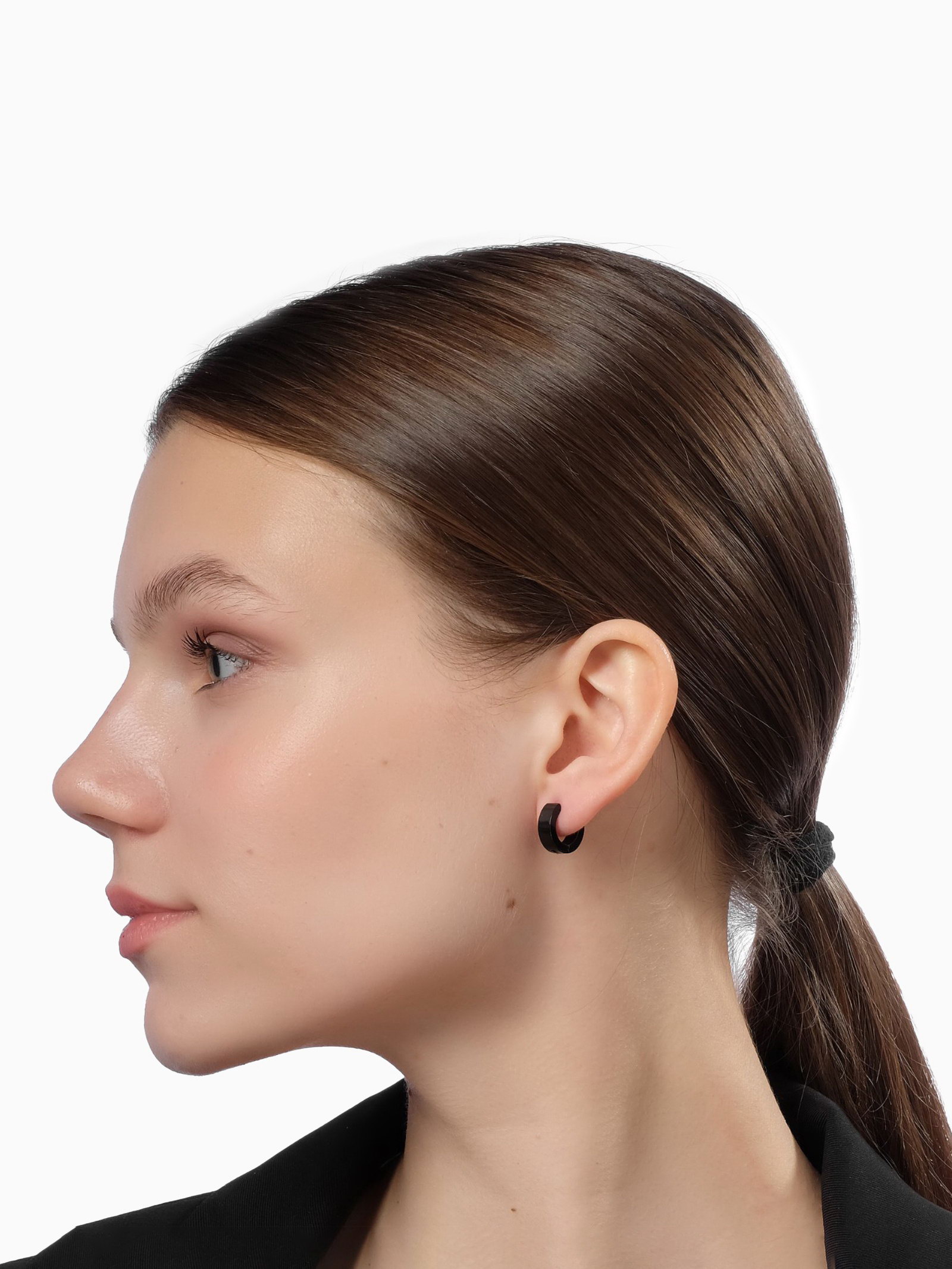 Серьги кольца чёрные "Нео", d=1.4 см, 1.2x1.4x0.3 см., QF, Китай