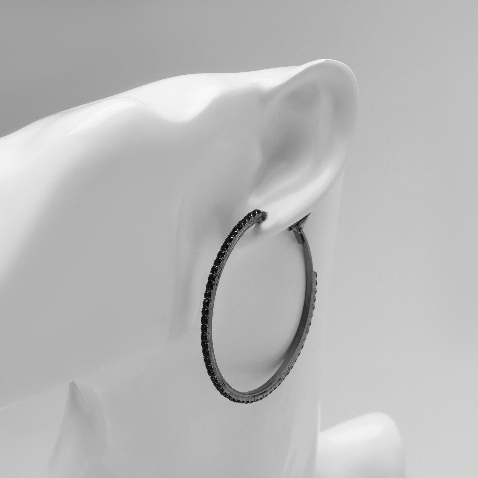 Серьги кольца со стразами "Сумерки", d=5 см, чёрные в серебре, 5x5x0.4 см., QF, Китай