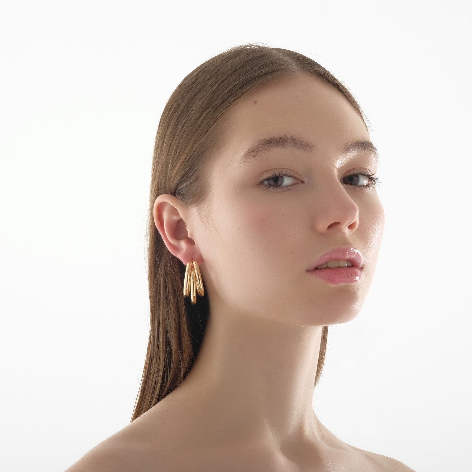 Серьги кольца тройные "Тринити", d=2 см, цвет золото, 3x3x1.5 см., QF, Китай