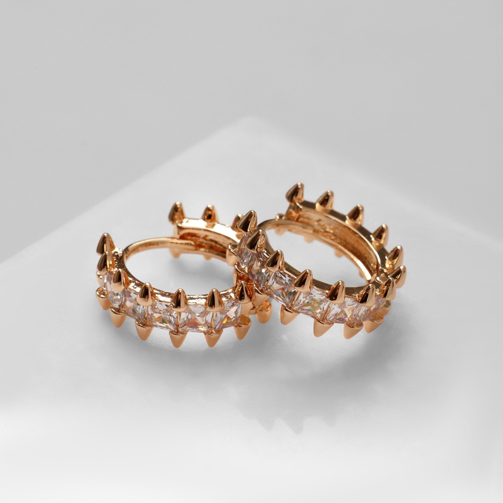 Серьги кольца со стразами "Искра", d=1.7 см, белые в золоте, 1.7x1.7x0.6 см., QF, Китай