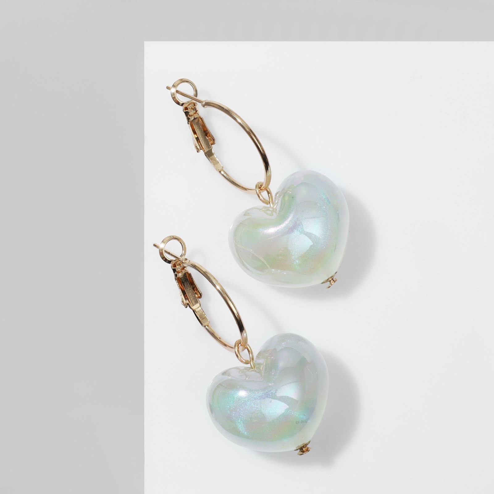Серьги кольца с сердцем "Карамель", светится в темноте, бежевые в золоте, 2x4.2x1.6 см., QF, Китай