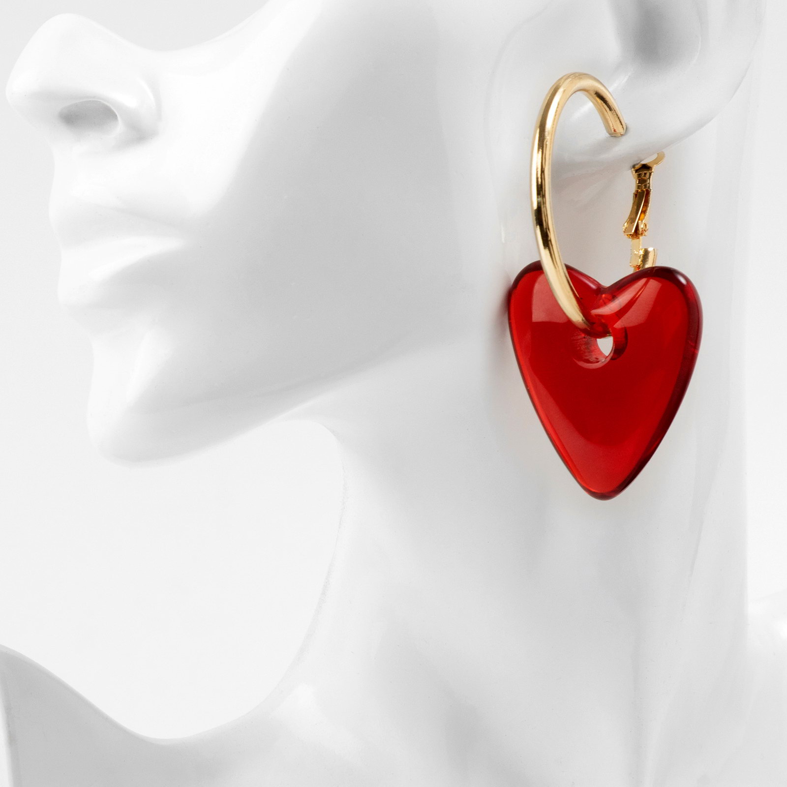 Серьги кольца с сердцем "Моя любовь", d=2 см, красный в золоте, 1.5x2x1.5 см., QF, Китай