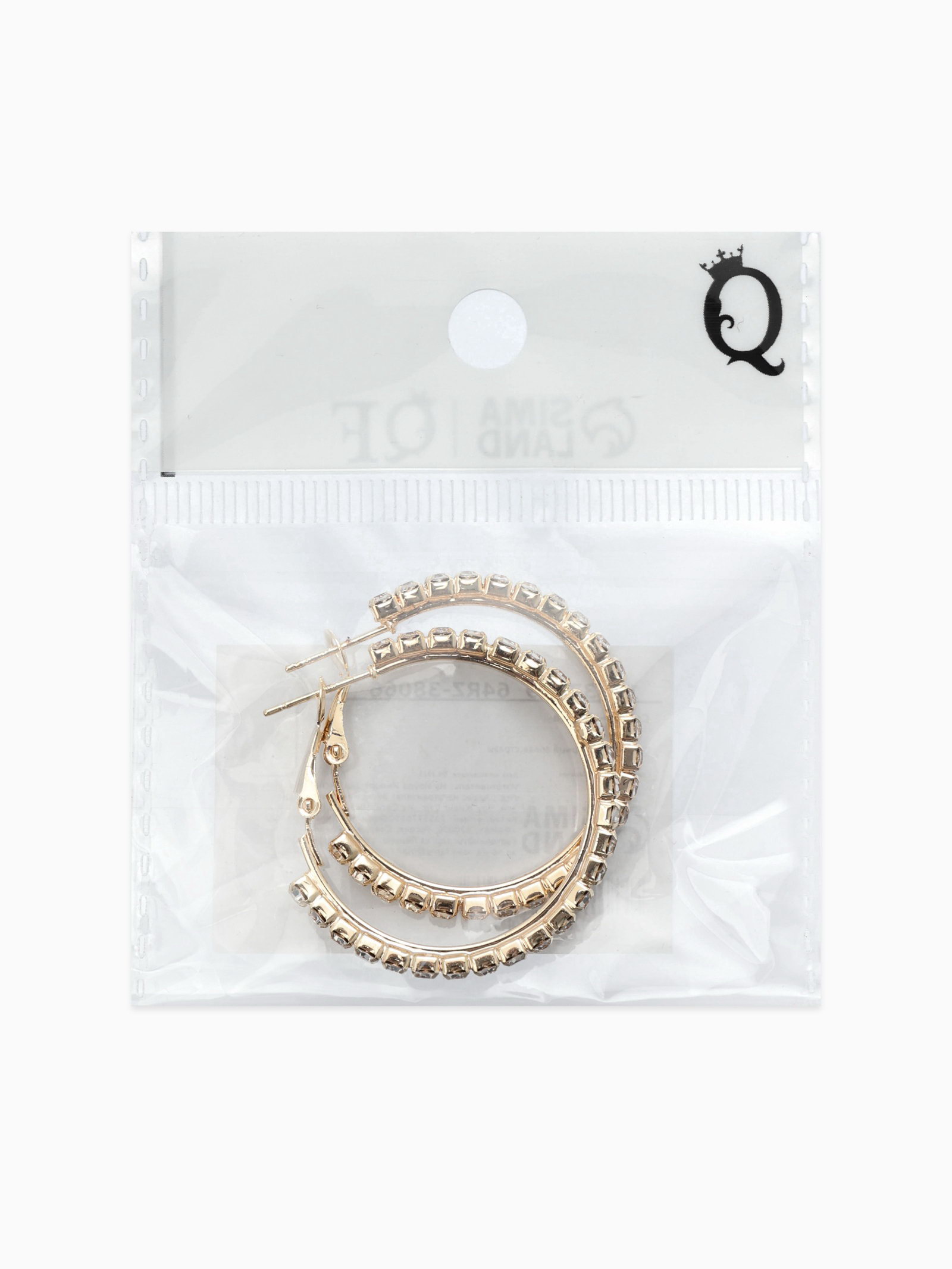 Серьги-кольца со стразами d=3.5 см, белые в золоте, 3.7x3.5x0.3 см., QF, Китай