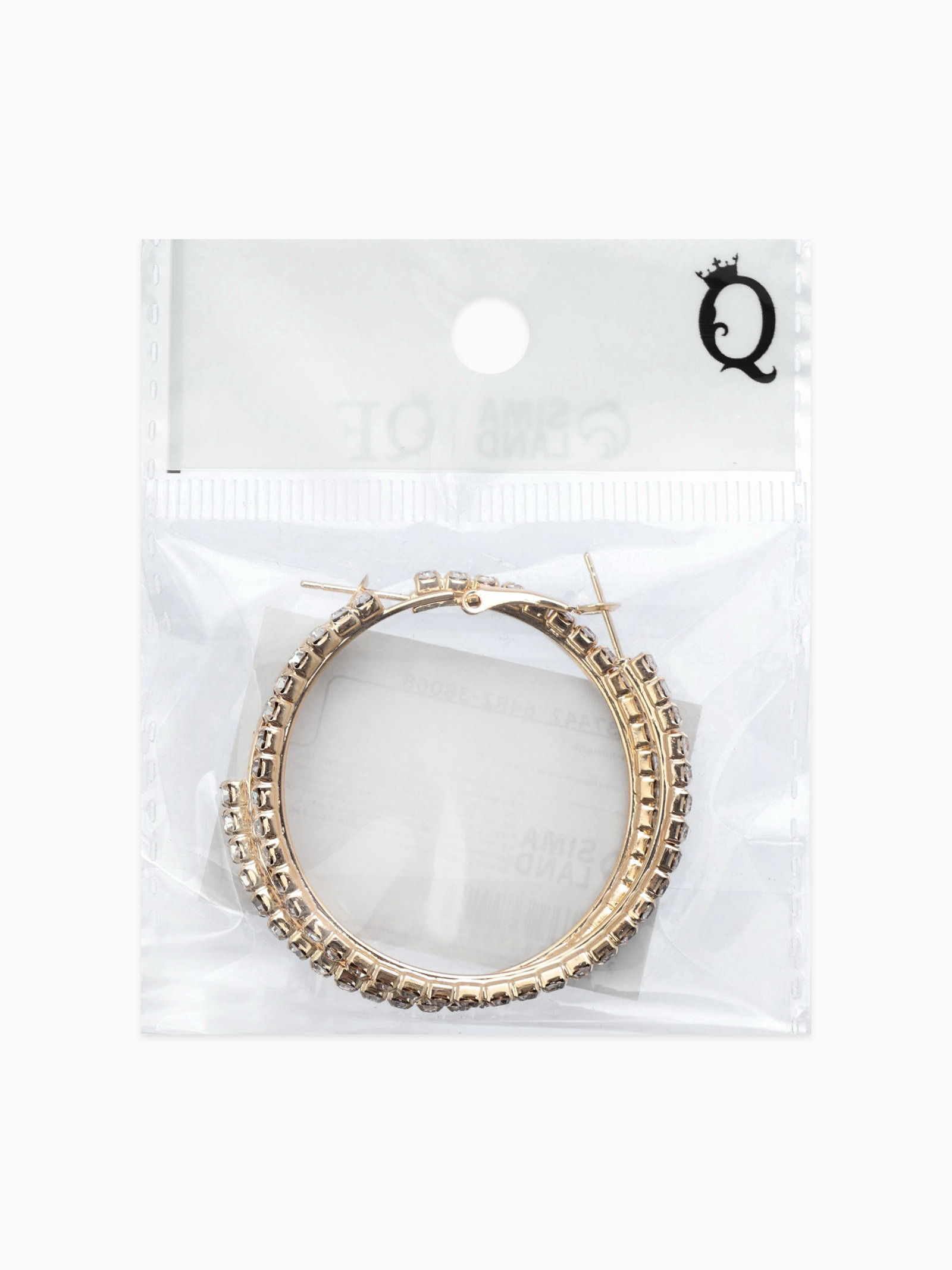 Серьги-кольца со стразами d=4.5 см, белые в золоте, 5x4.5x0.3 см., QF, Китай