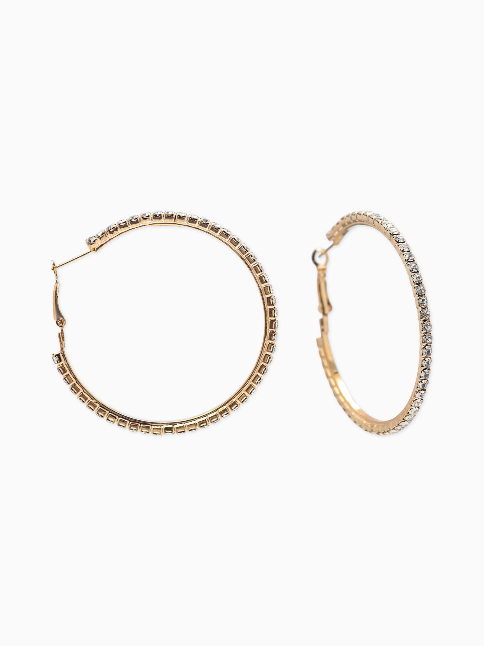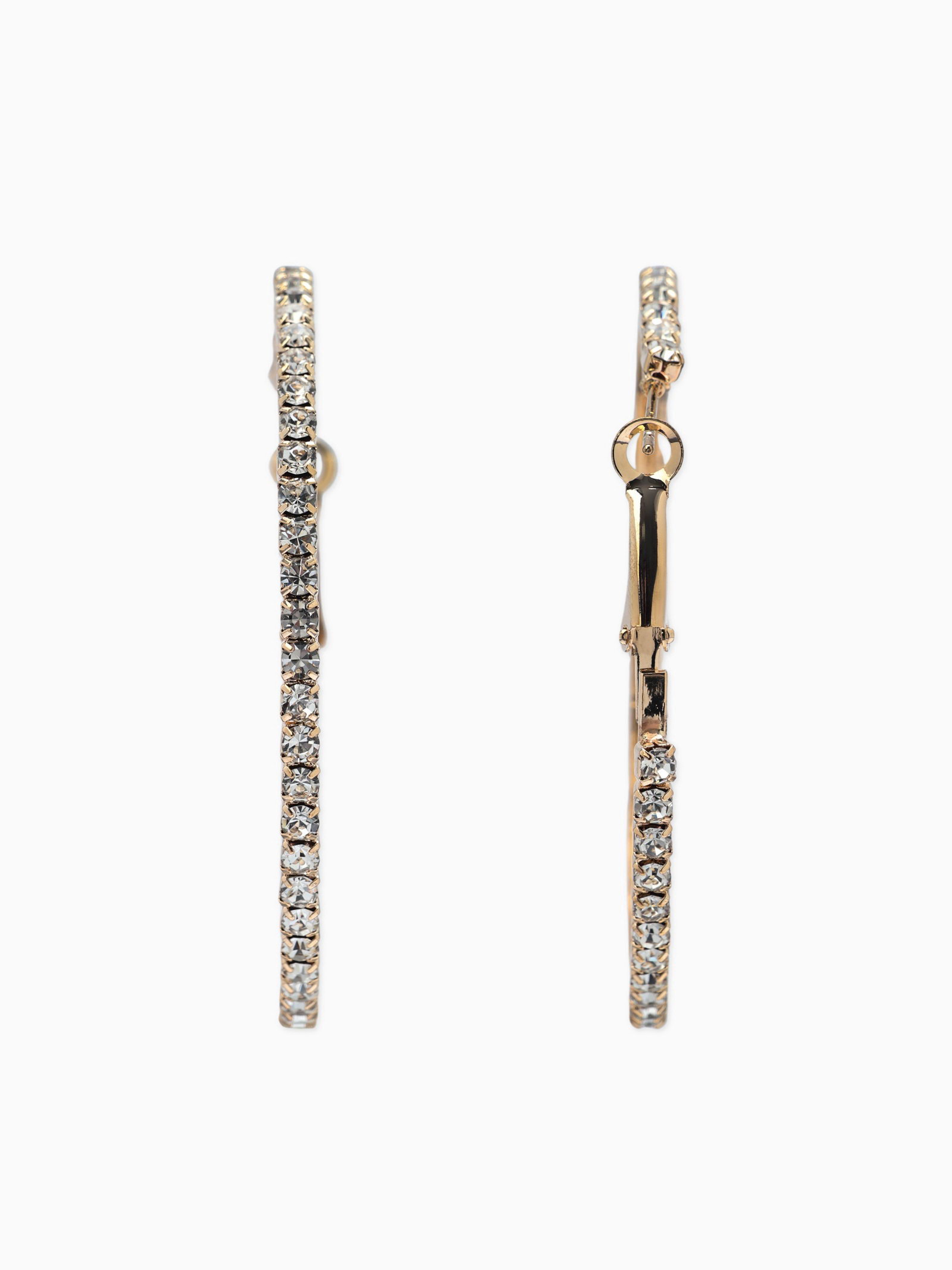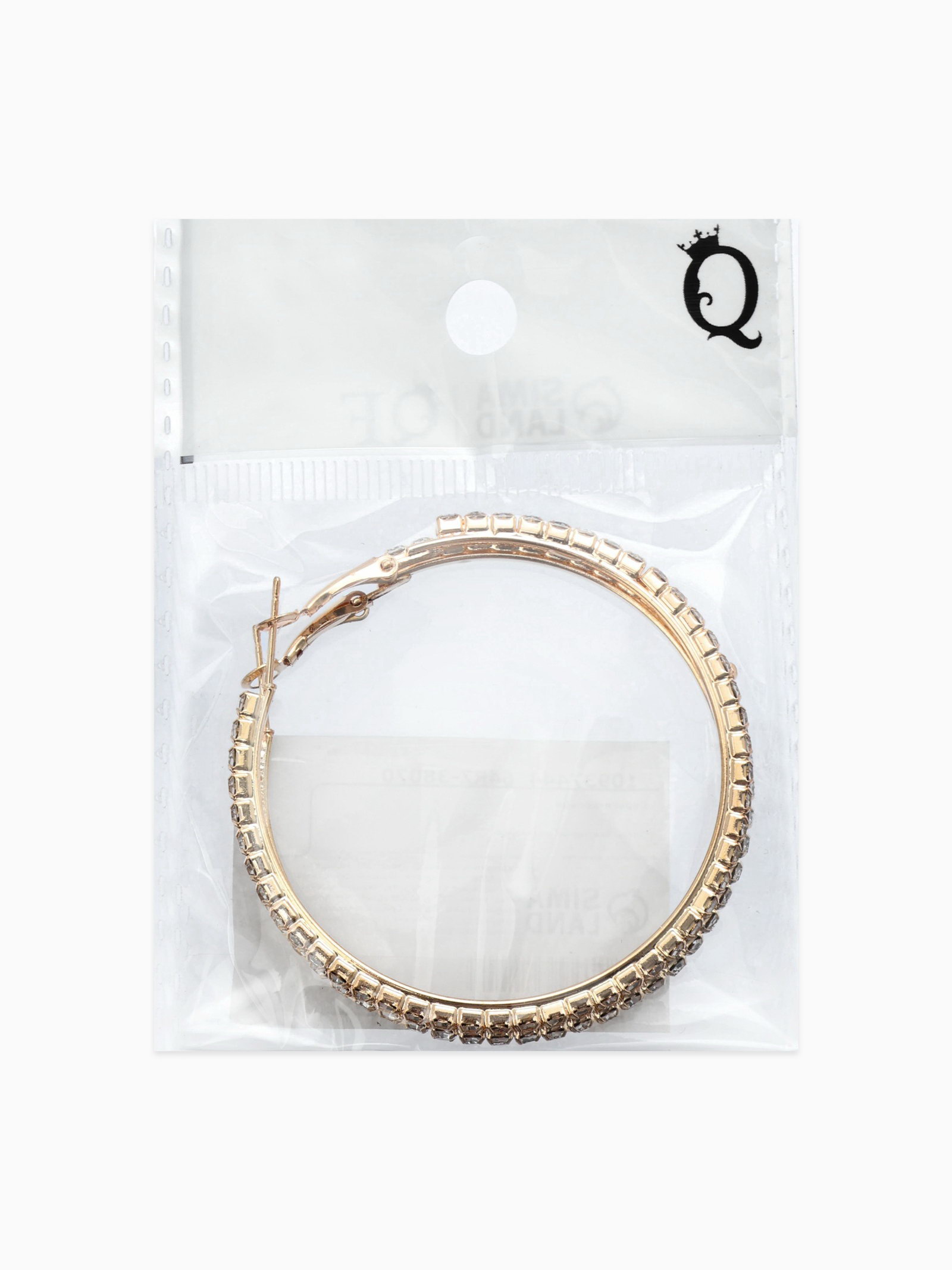 Серьги-кольца со стразами d=5.5 см, белые в золоте, 5.5x5.5x0.3 см., QF, Китай