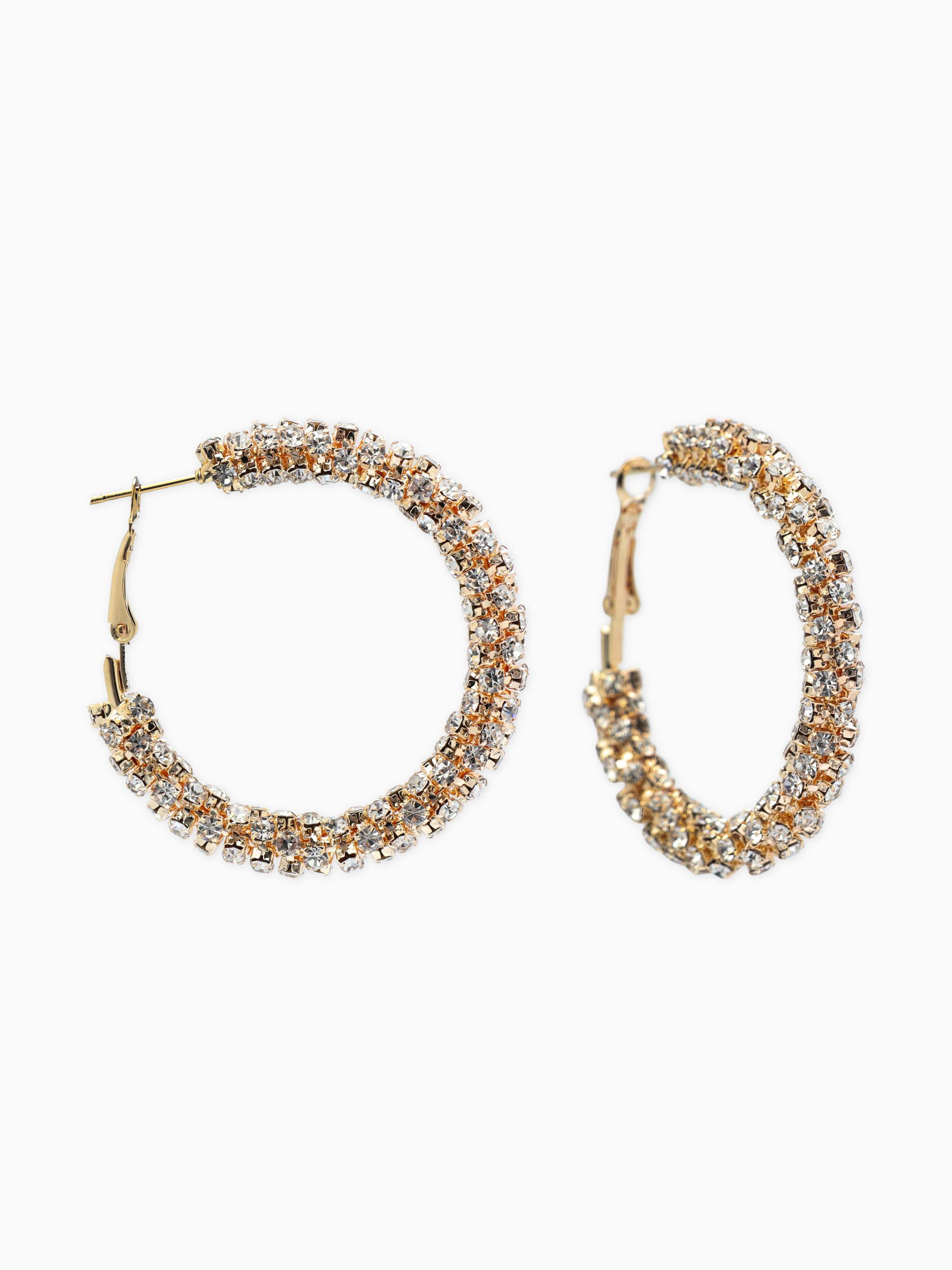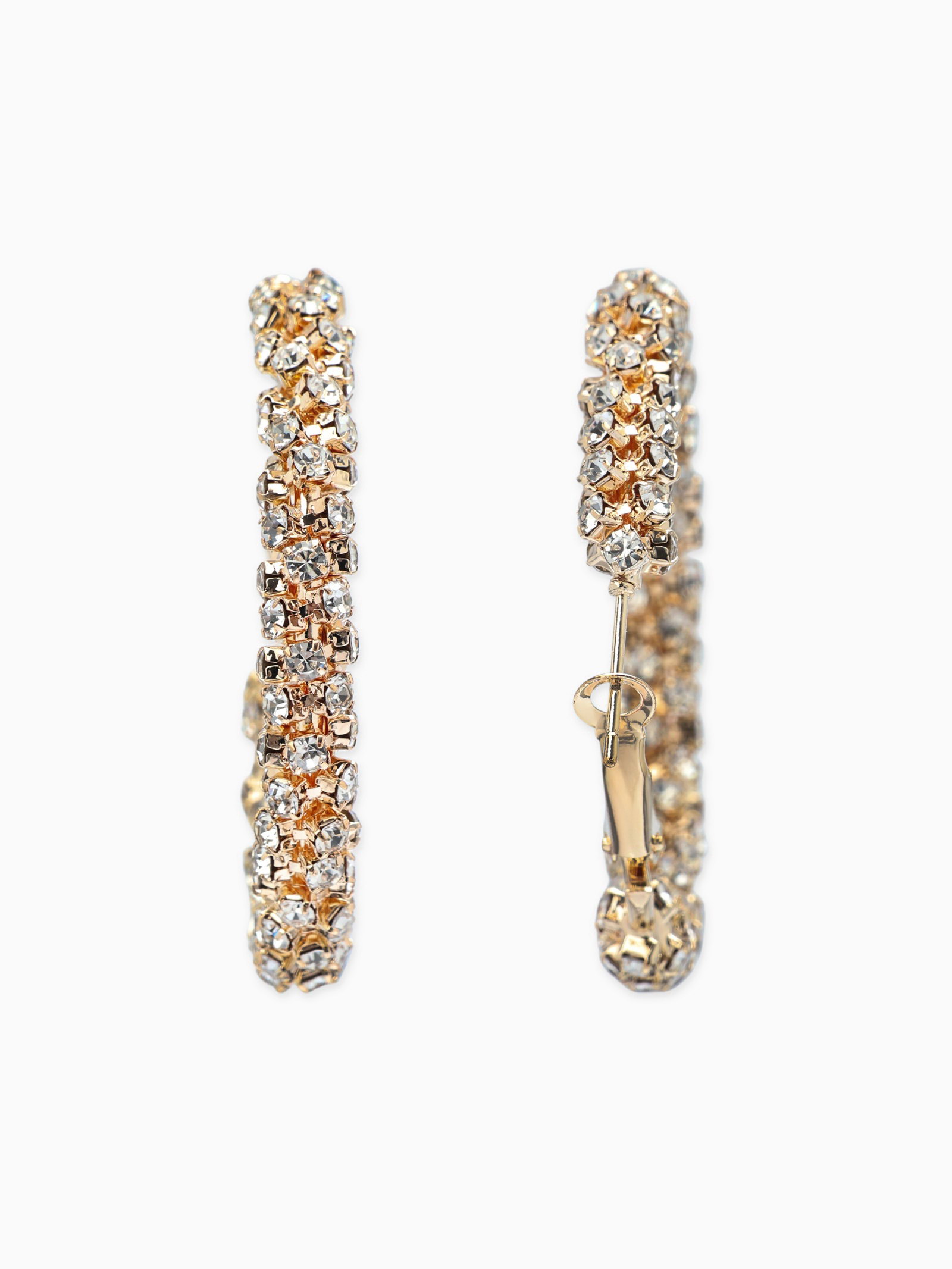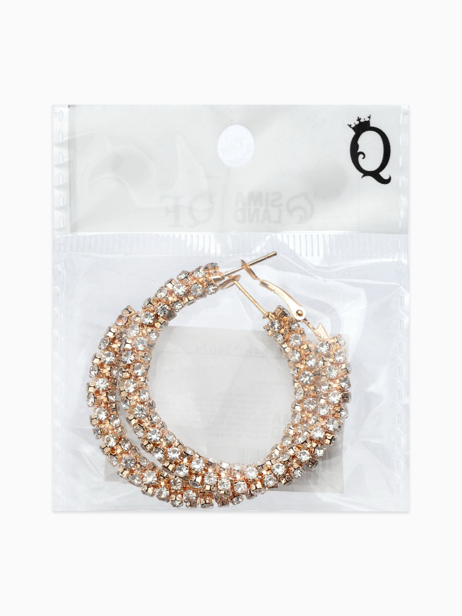 Серьги-кольца со стразами "Россыпь", d=4.5 см, белые в золоте, 4.8x4.5x0.5 см., QF, Китай