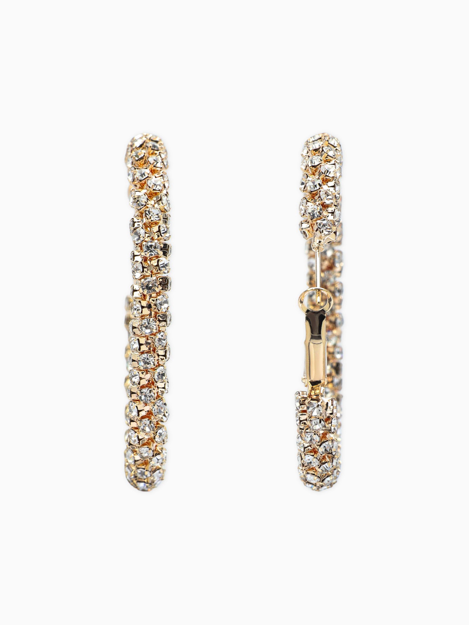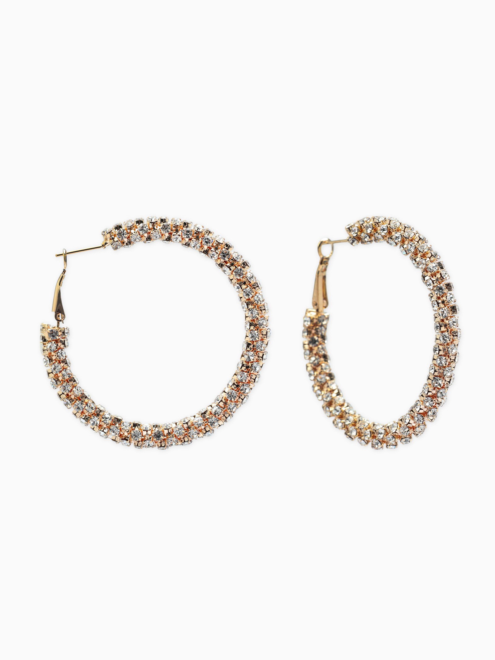 Серьги-кольца со стразами "Россыпь", d=5.5 см, белые в золоте, 5.5x5.5x0.5 см., QF, Китай