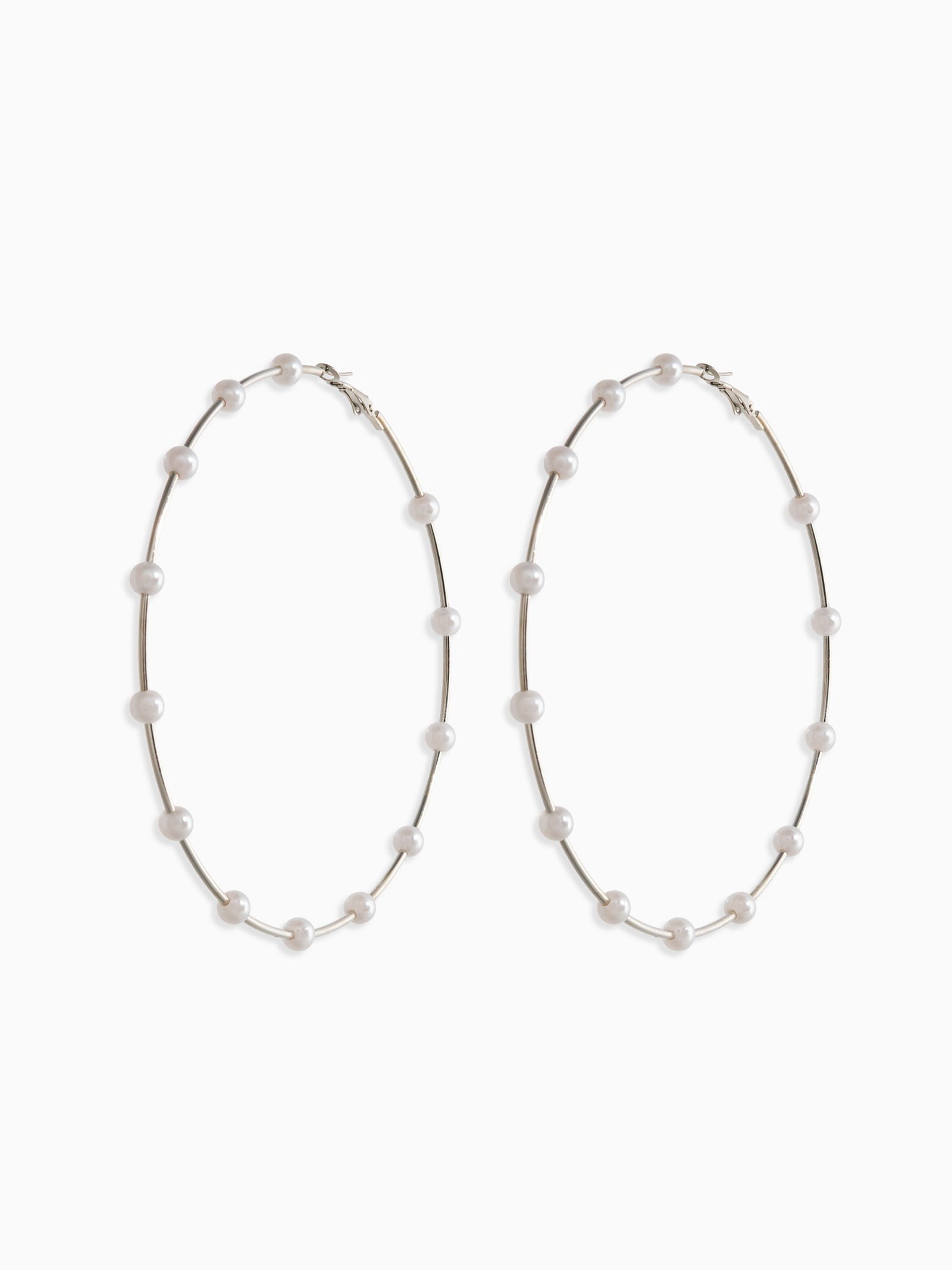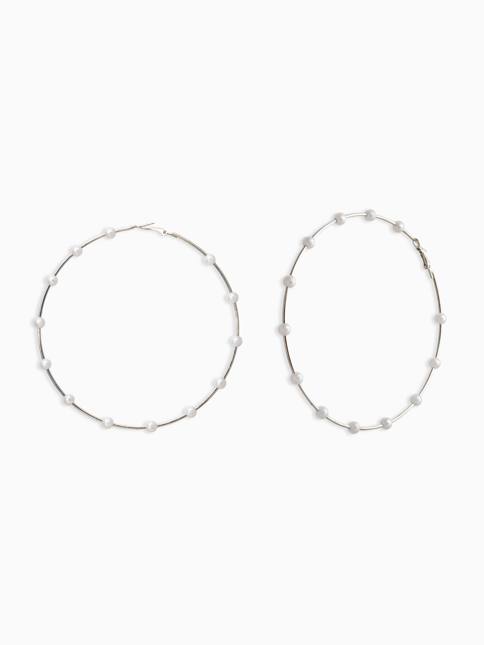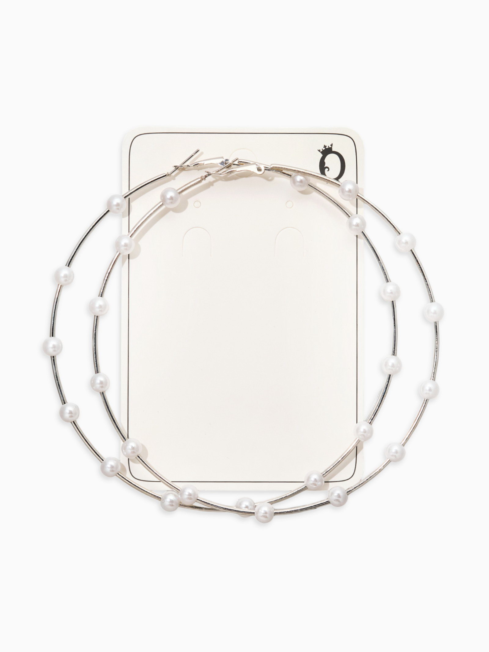Серьги-кольца "Жемчуг", d=10 см, №6, белые в серебре, 10x10x0.6 см., QF, Китай