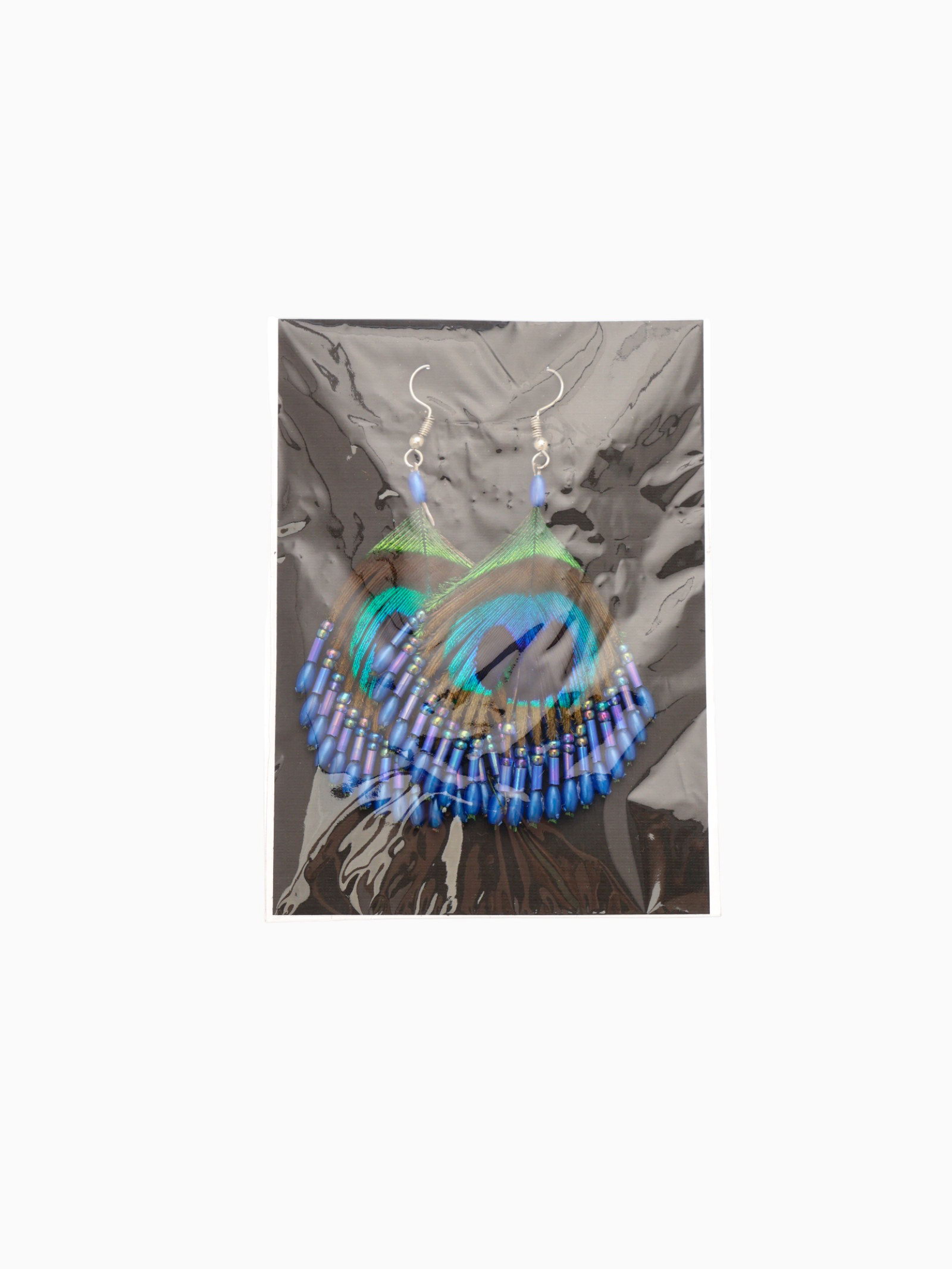 Серьги "Павлин", 5x8 см, синие, 8x5x0.5 см., Индонезия