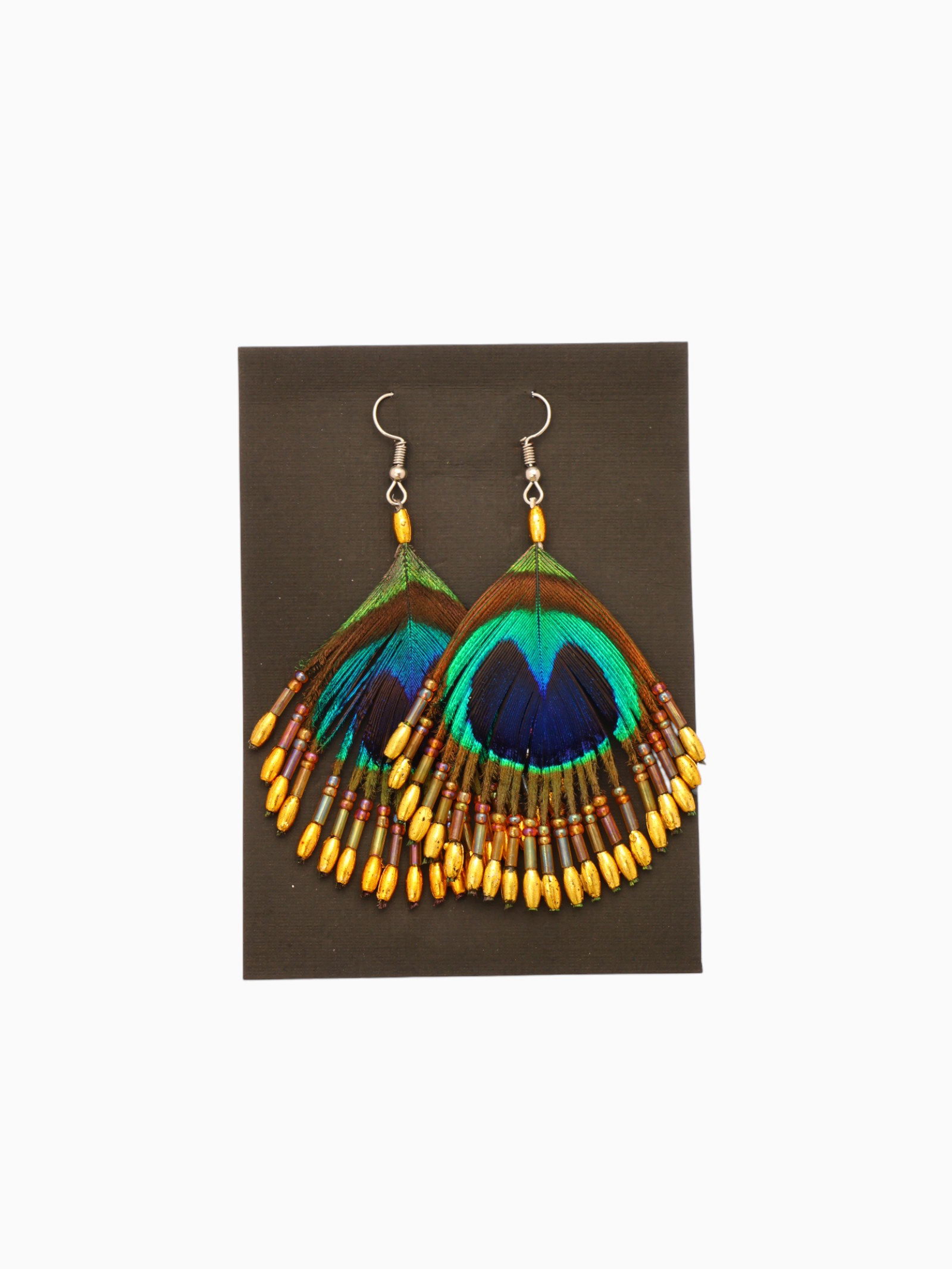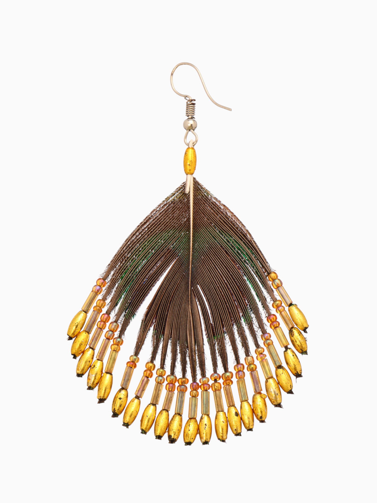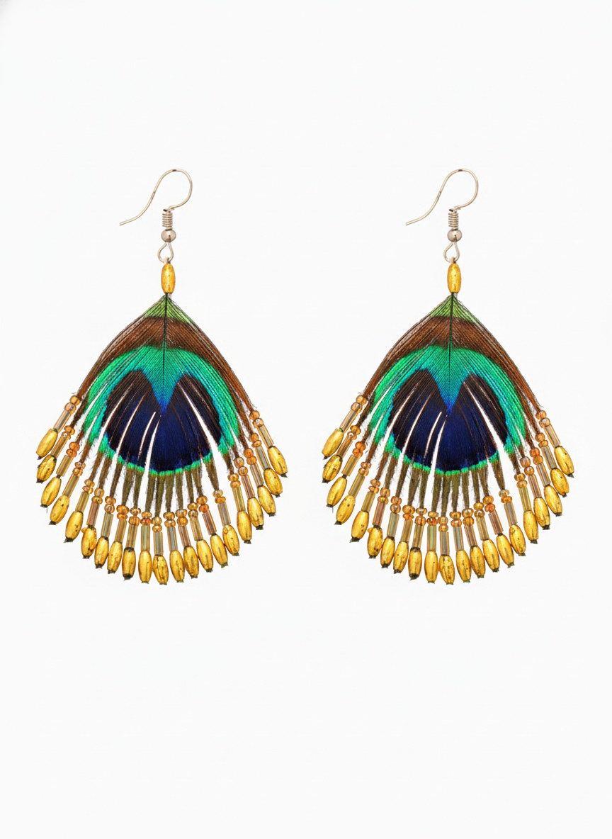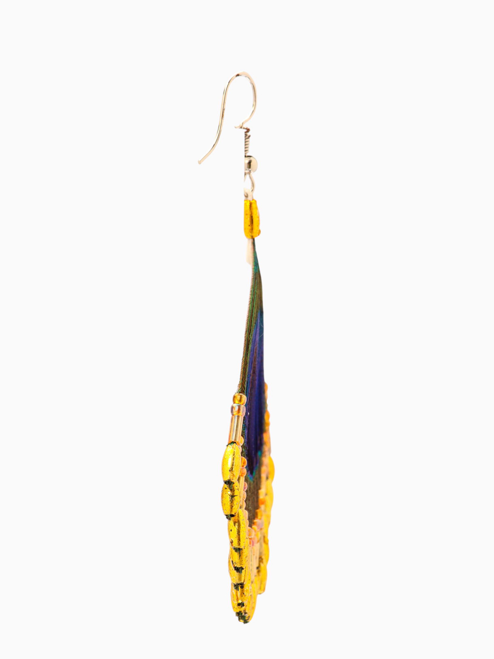 Серьги "Павлин", 5x8 см, жёлтые, 8x5x0.5 см., Индонезия