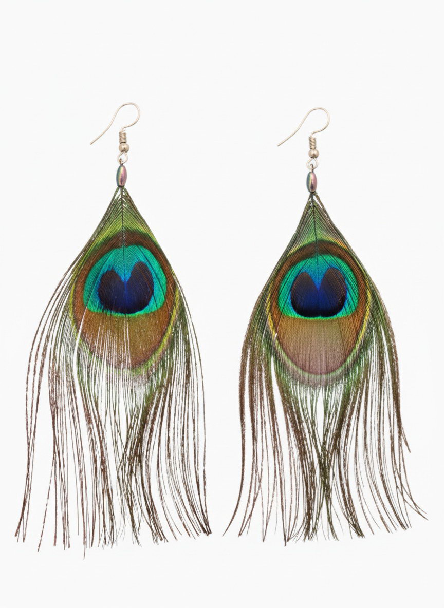 Серьги "Павлин", 5x12 см, 12x5x0.5 см., Индонезия