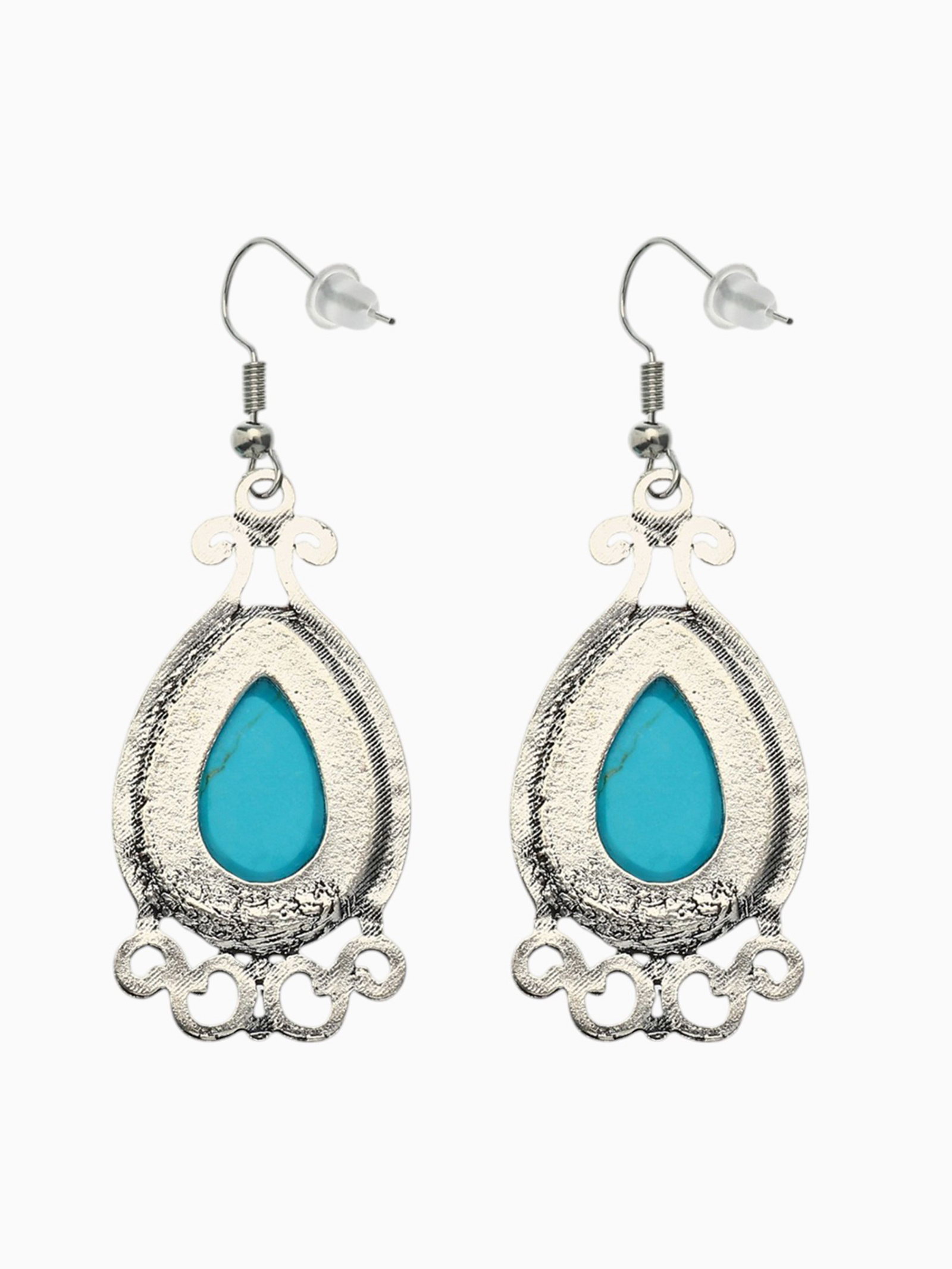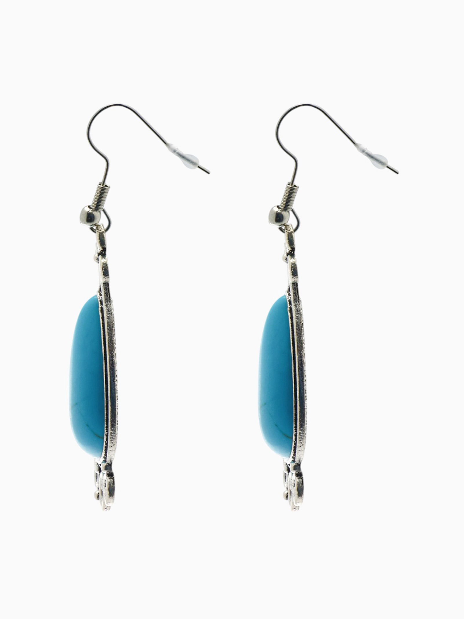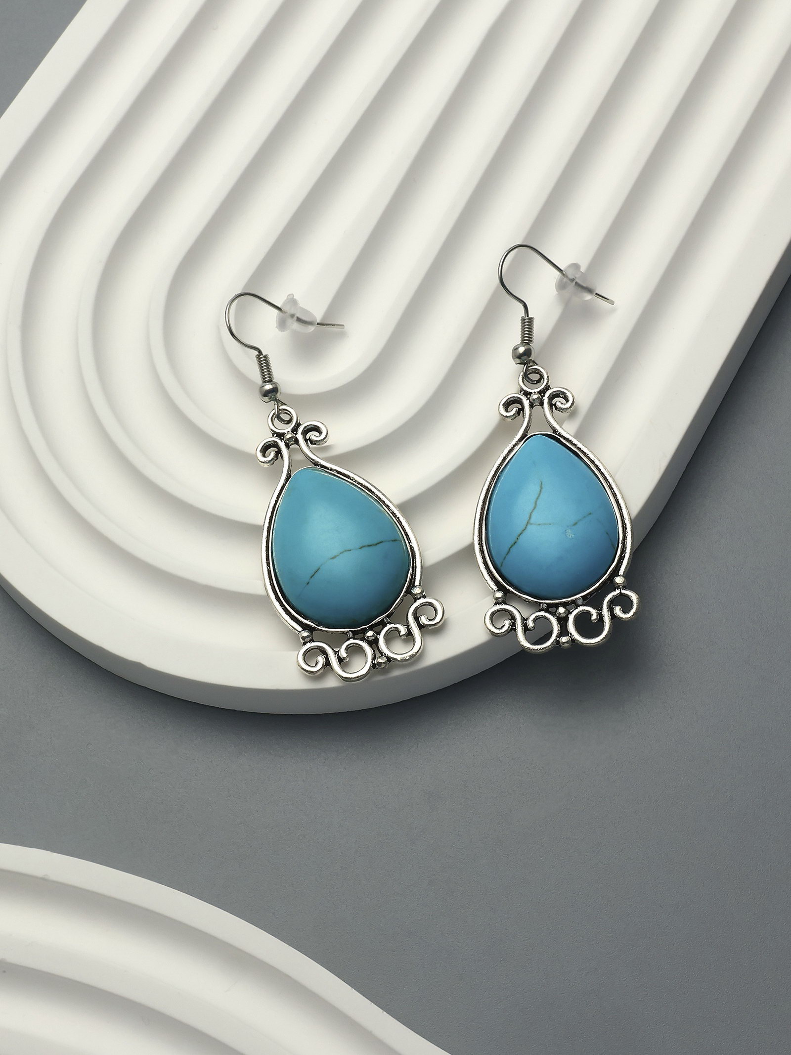 Серьги "Бирюзовый мир" капля, голубые в чернёном серебре, 1.7x5x0.8 см., QF, Китай