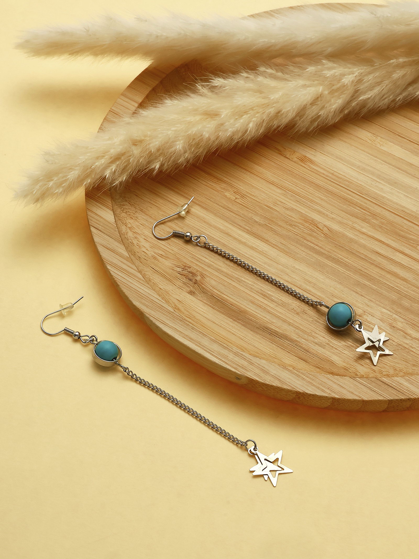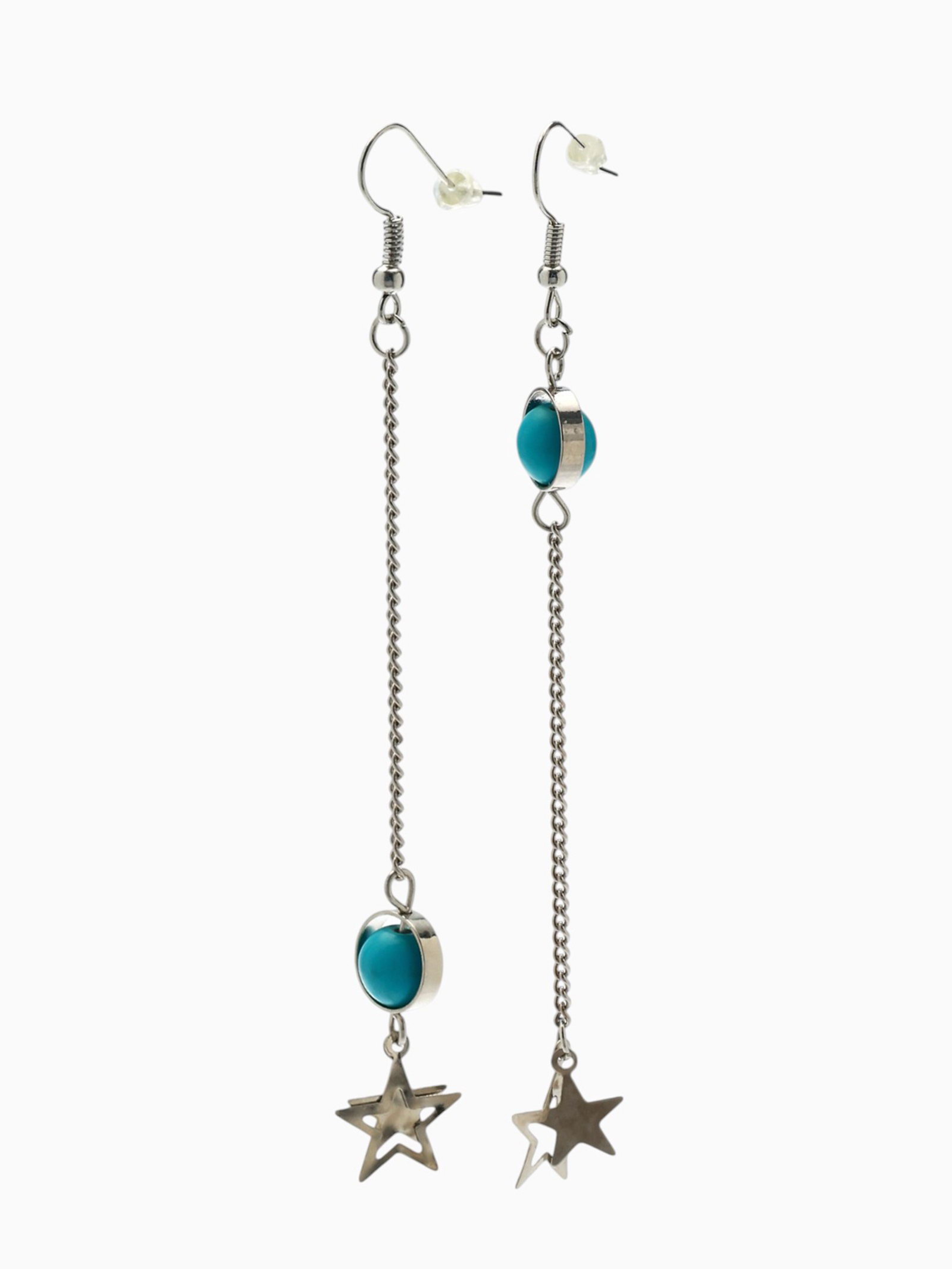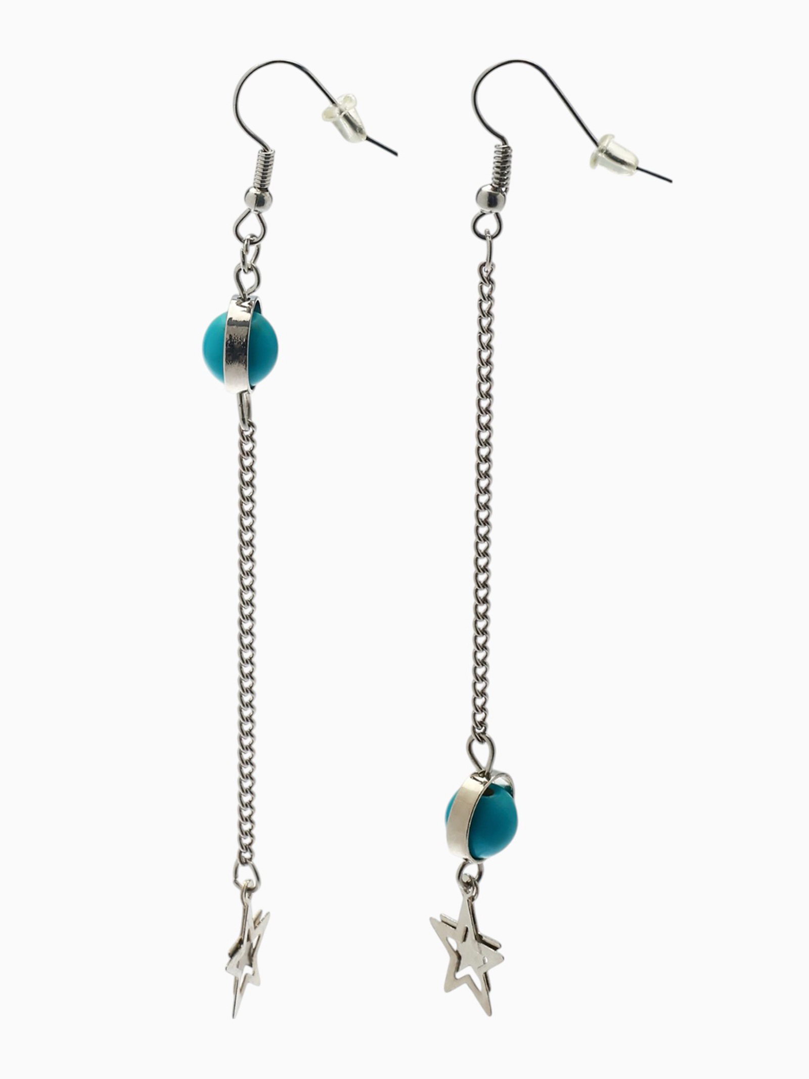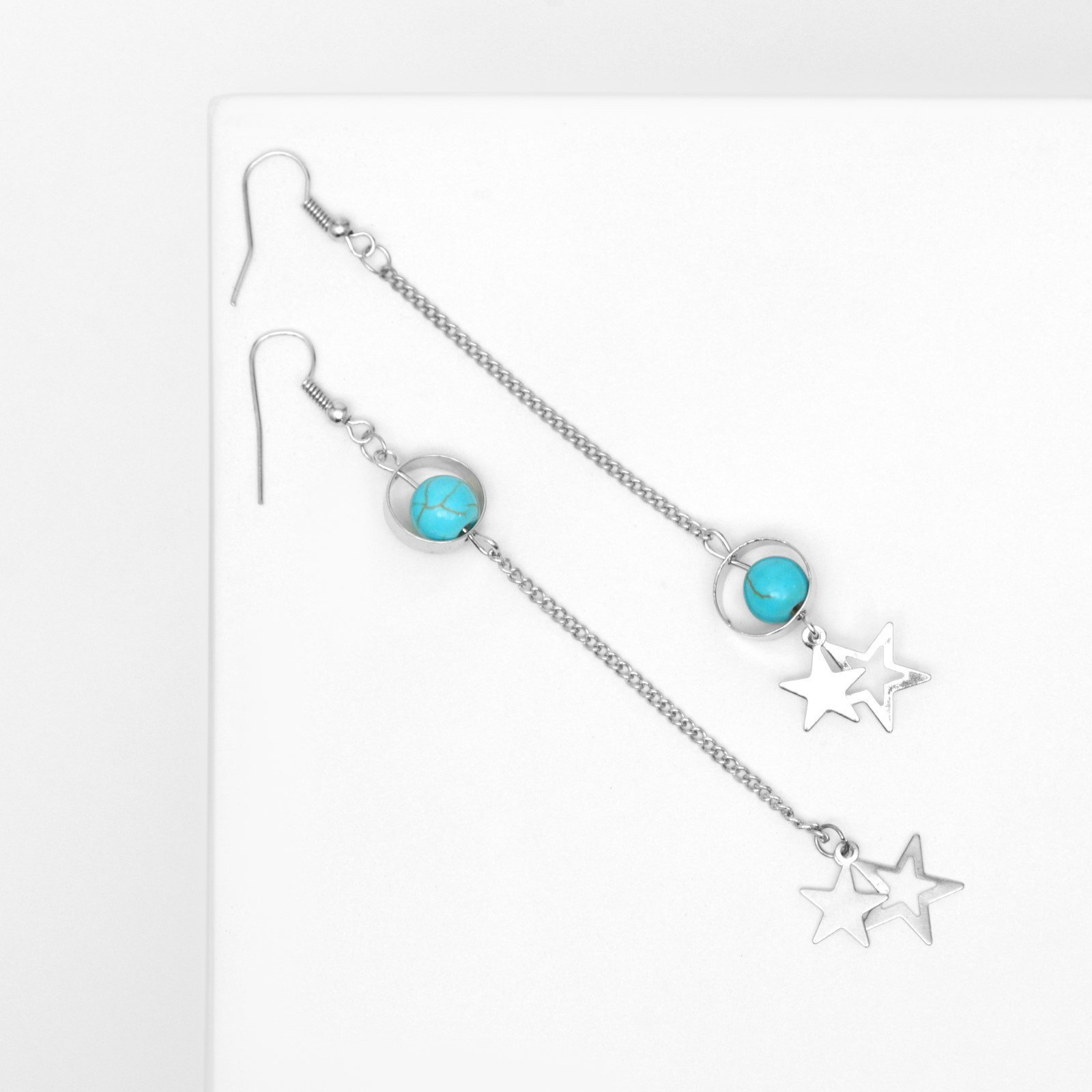 Серьги под натуральный камень "Звёзды" бирюза, голубые в серебре, 1x9.5x1 см., QF, Китай