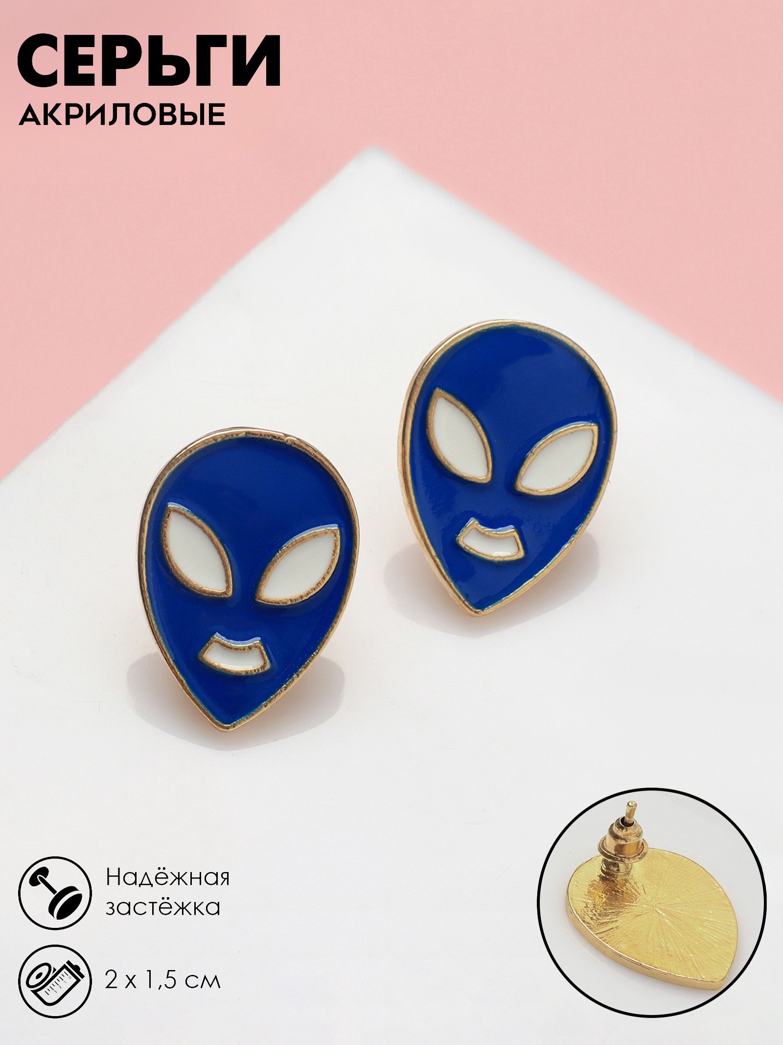 Вид: Серьги, Серьги Тематика праздника: 8 Марта, День рождения, Универсальная тематика Для кого: Для девочки, Для женщины Тематика: Космос, Космос, Хэллоуин, Яркая Размер упаковки: 6 x 1 x 6 см. Материал основания: Металл Материал основы: Металл Вид застёжки: Застёжка пусет (гвоздик) Возраст: Для взрослых Составляющие набора: Серьги Тематика подарка: Бижутерия tnved: 7117190000 Вставка/Подвеска: Эмаль Длина, см: 2 Набор: Нет Цвет фурнитуры: Золотой Цвет: Синий Погрузитесь в атмосферу космических приключений с удивительными серьгами в форме инопланетян, которые добавят в ваш образ нотку игривости и уникальности. Эти серьги, выполненные в сине-белых тонах с золотой фурнитурой, станут ярким акцентом, который привлечет внимание и вызовет улыбки. С длиной всего 2 см и застёжкой типа пусет, они обеспечивают комфортное ношение на протяжении всего дня. Эти серьги идеально подходят как для повседневного использования, так и для особых случаев, таких как Хеллоуин или день рождения, добавляя вашему стилю оригинальности и креативности.