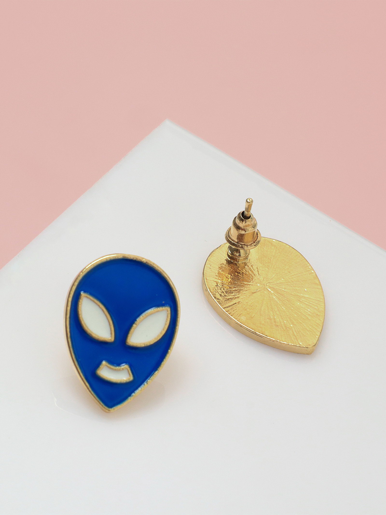 Серьги с эмалью "Инопланетяне", цвет сине-белый в золоте, 1.5x2x2 см., QF, Китай