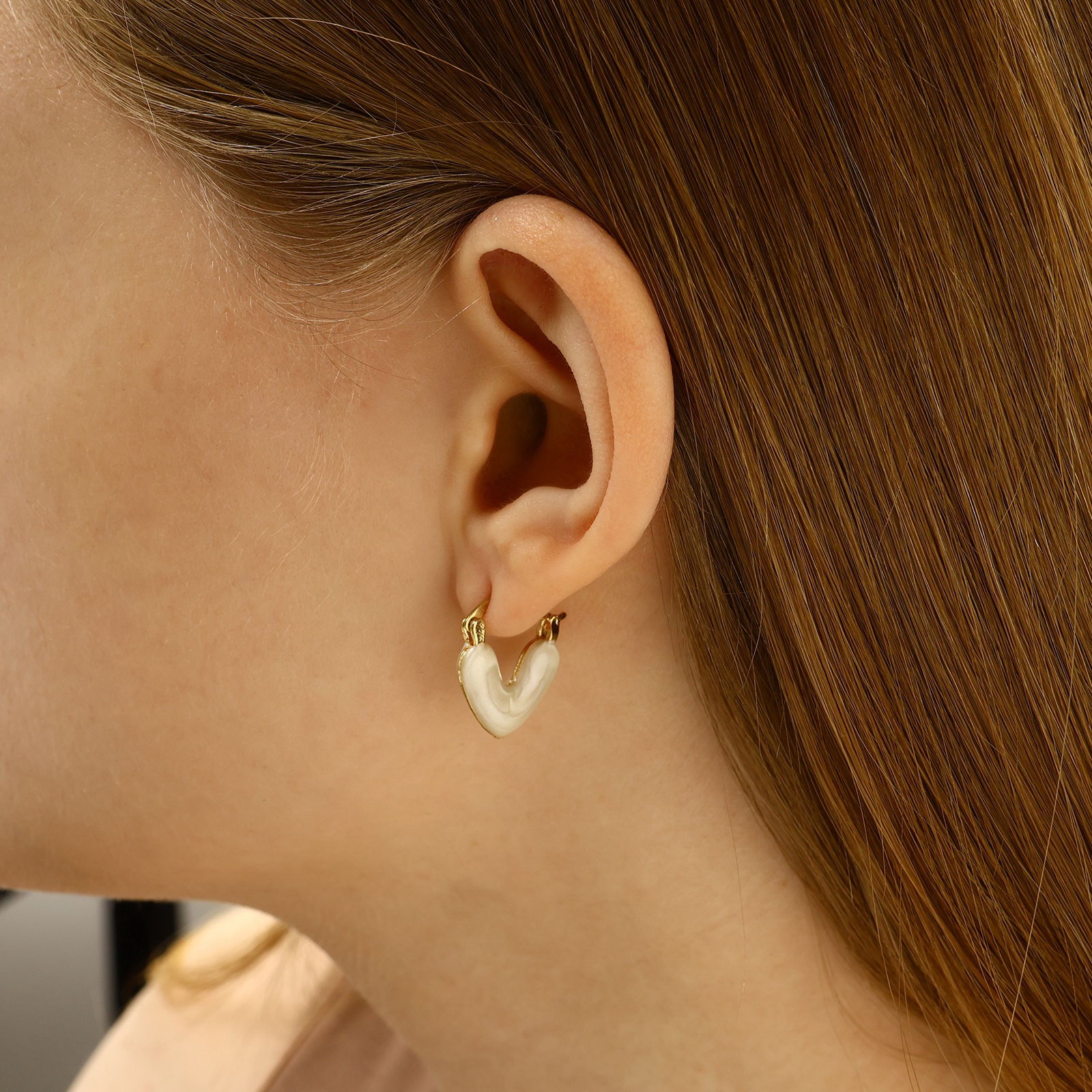 Серьги с эмалью "Сердце" перламутровые, цвет белый в золоте, 1.6x1.9x0.5 см., Queen fair, Китай