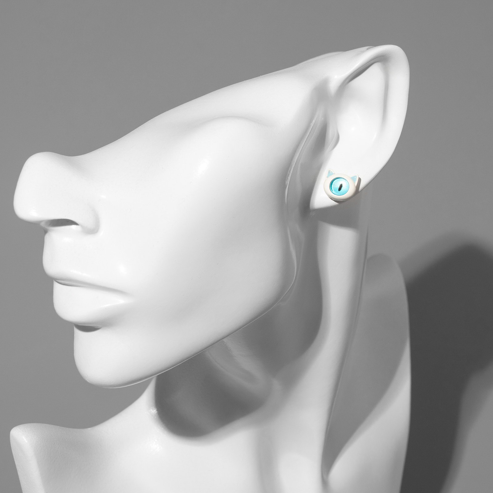 Серьги с эмалью "Монстрики" котик, цвет бело-голубой, 1x1x1 см., QF, Китай