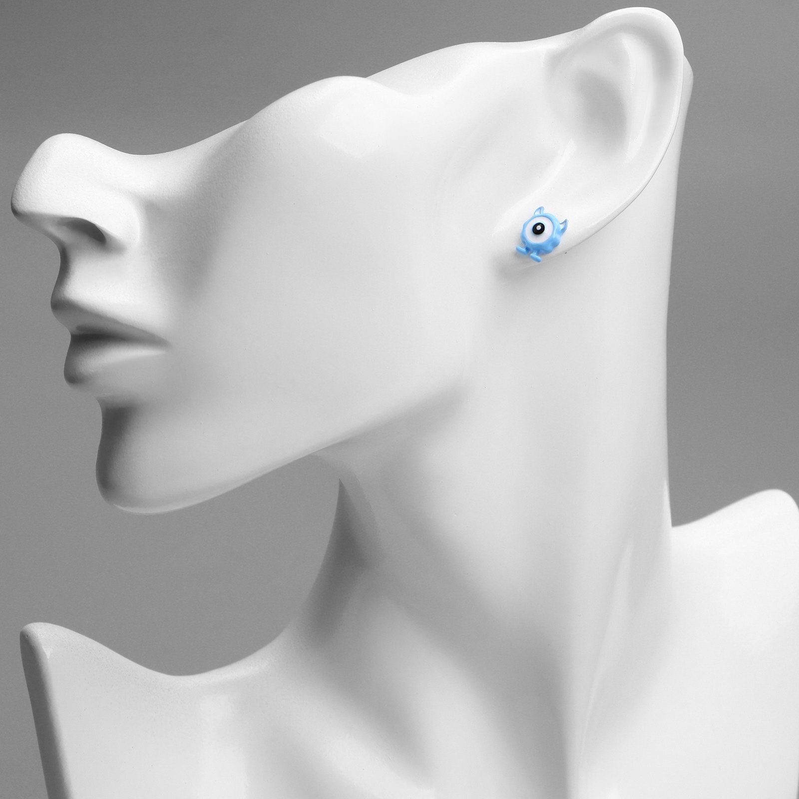 Серьги с эмалью "Монстрики" с рожками и ногами, цвет бело-голубой, 0.7x1x0.3 см., QF, Китай