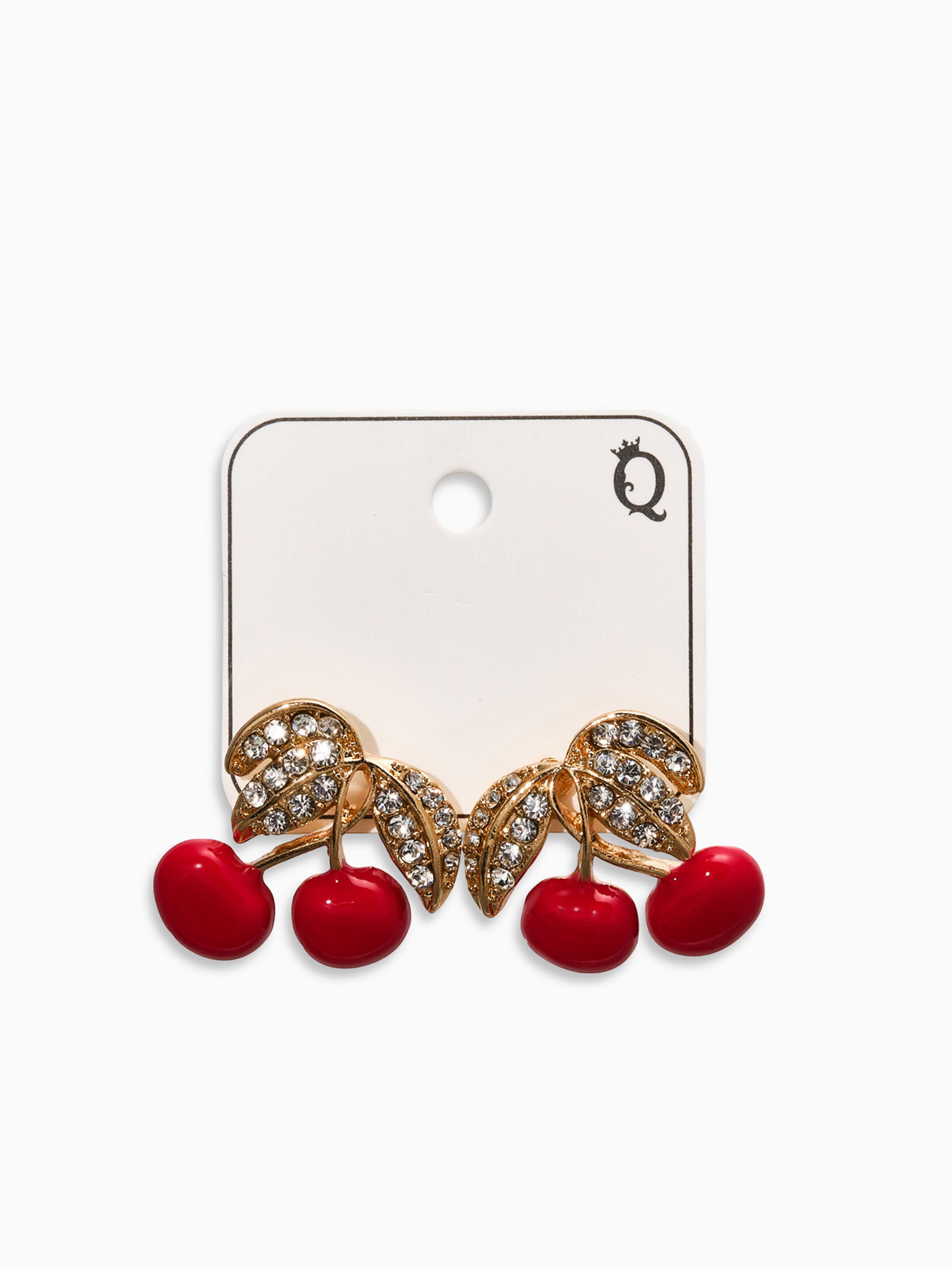 Серьги со стразами "Вишня", цвет бело-красный в золоте, 2.5x2.5x0.4 см., QF, Китай