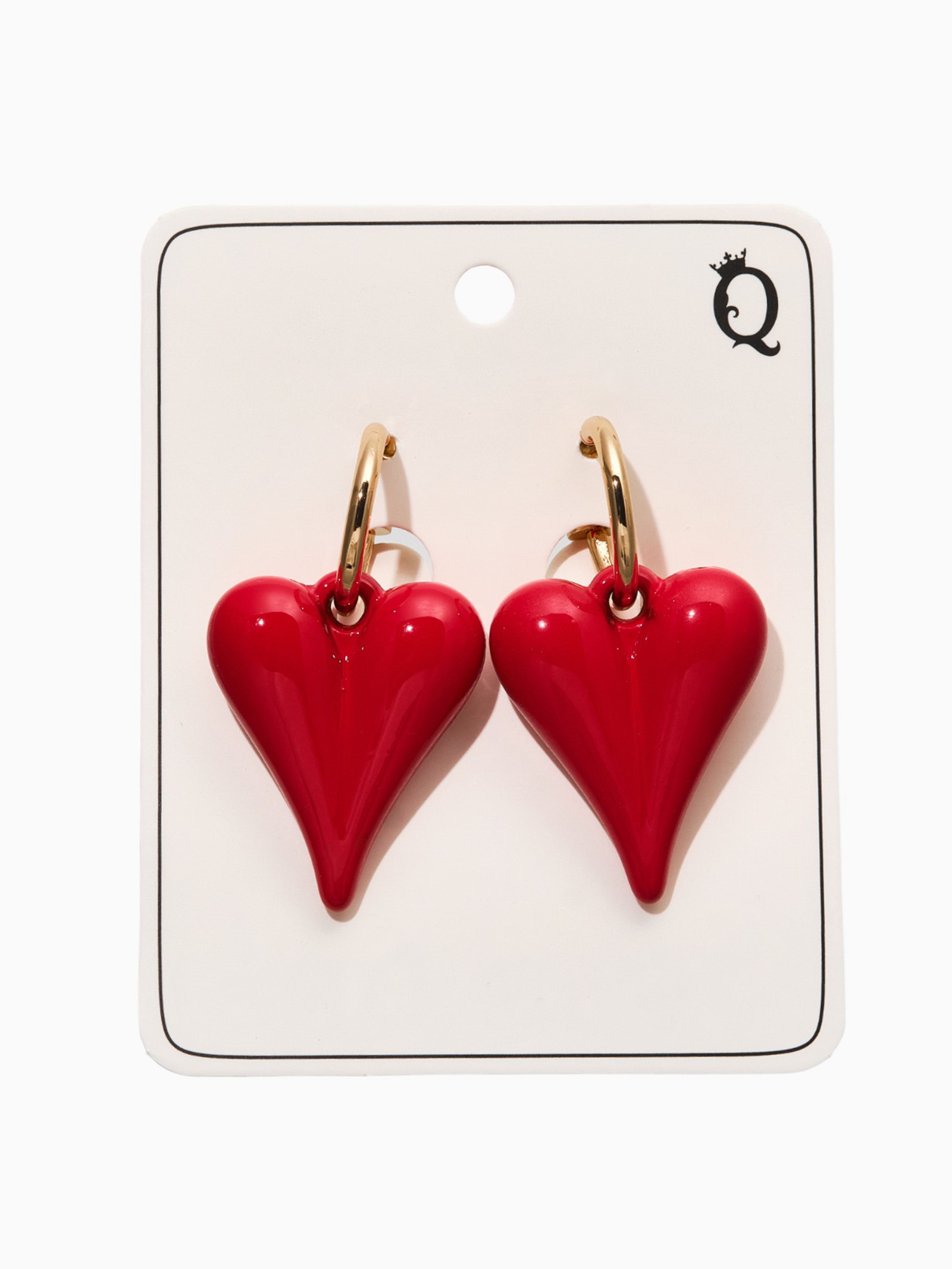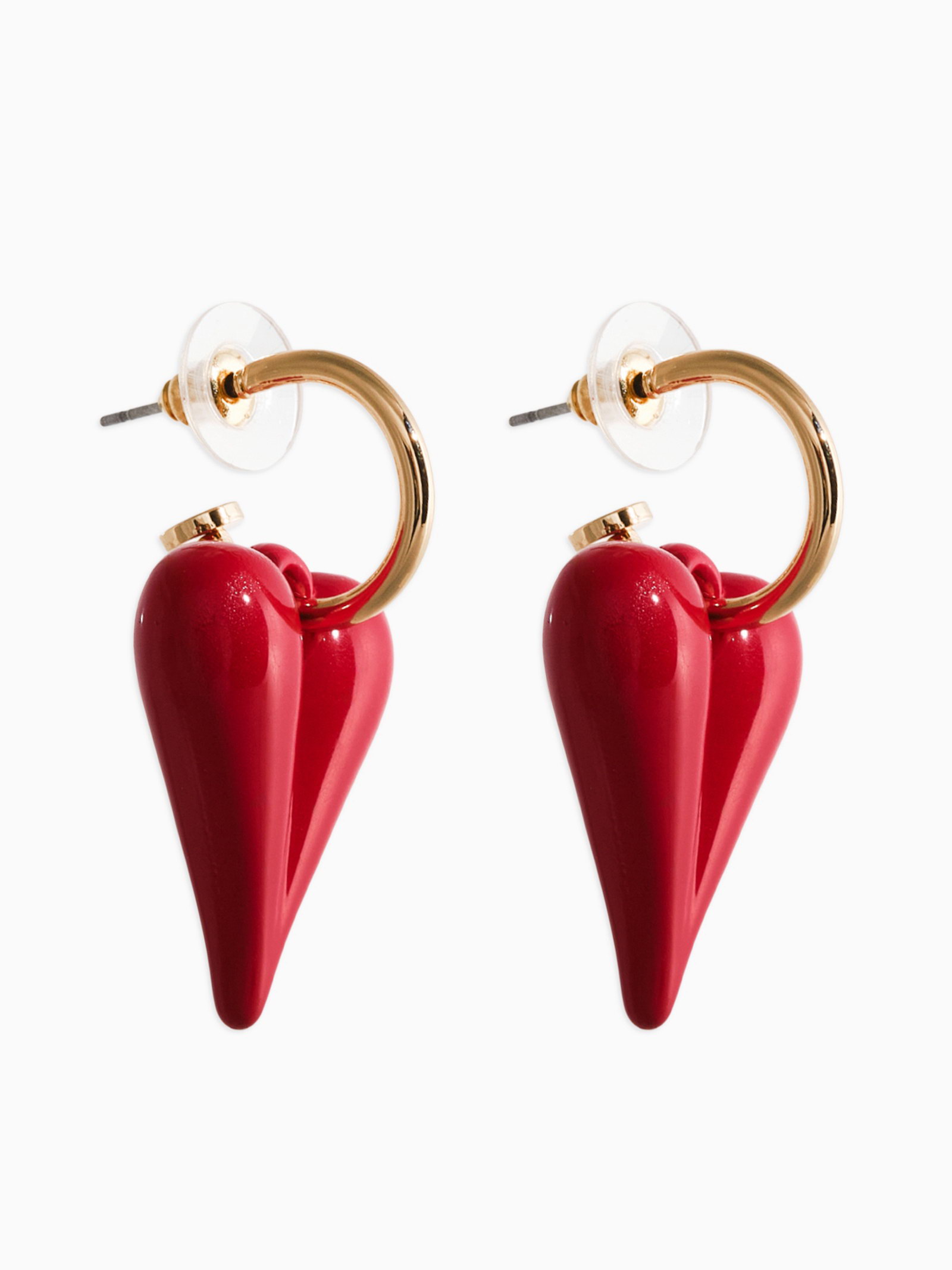 Серьги со съёмными подвесками "Сердца вытянутые", красные в золоте, 2x4x1.5 см., QF, Китай