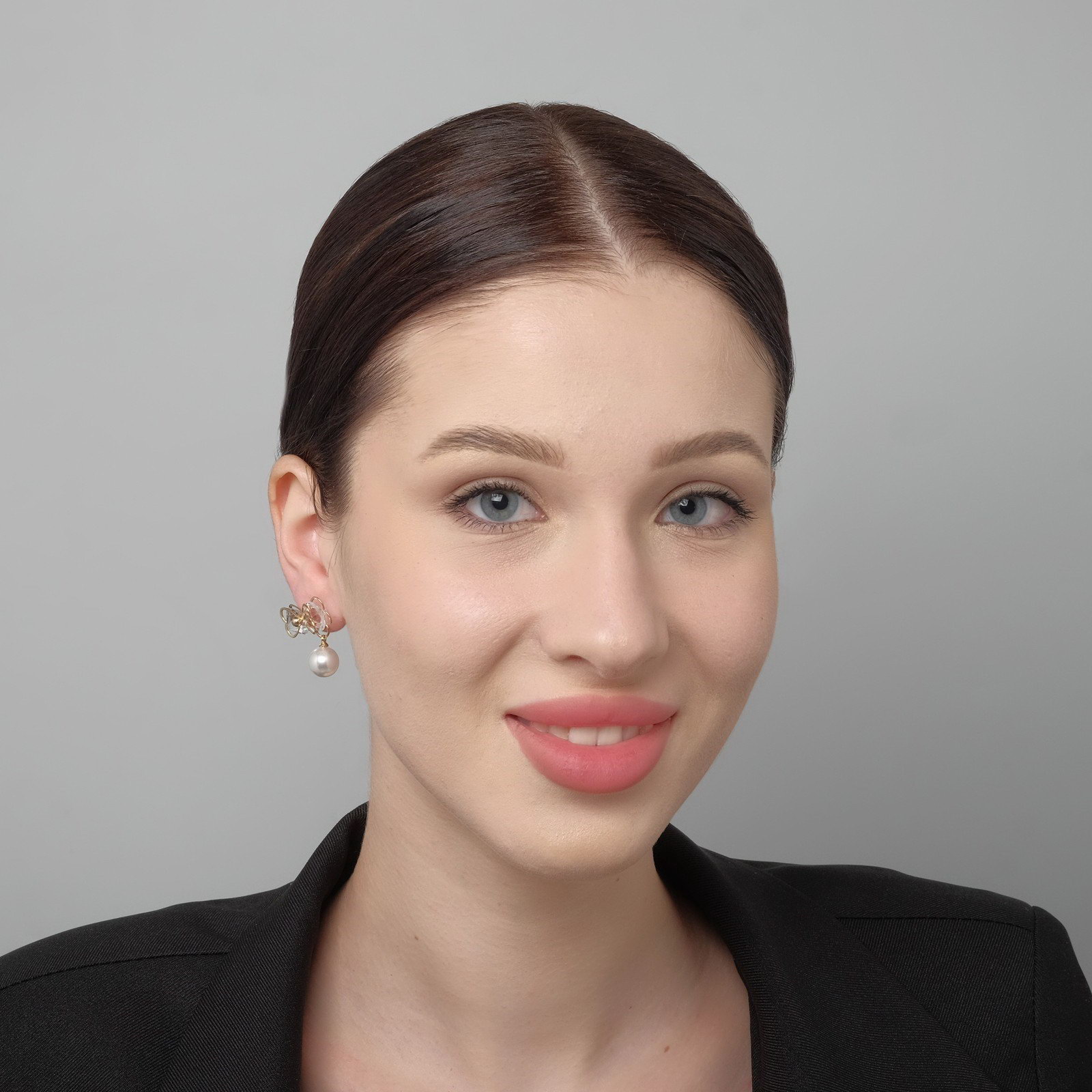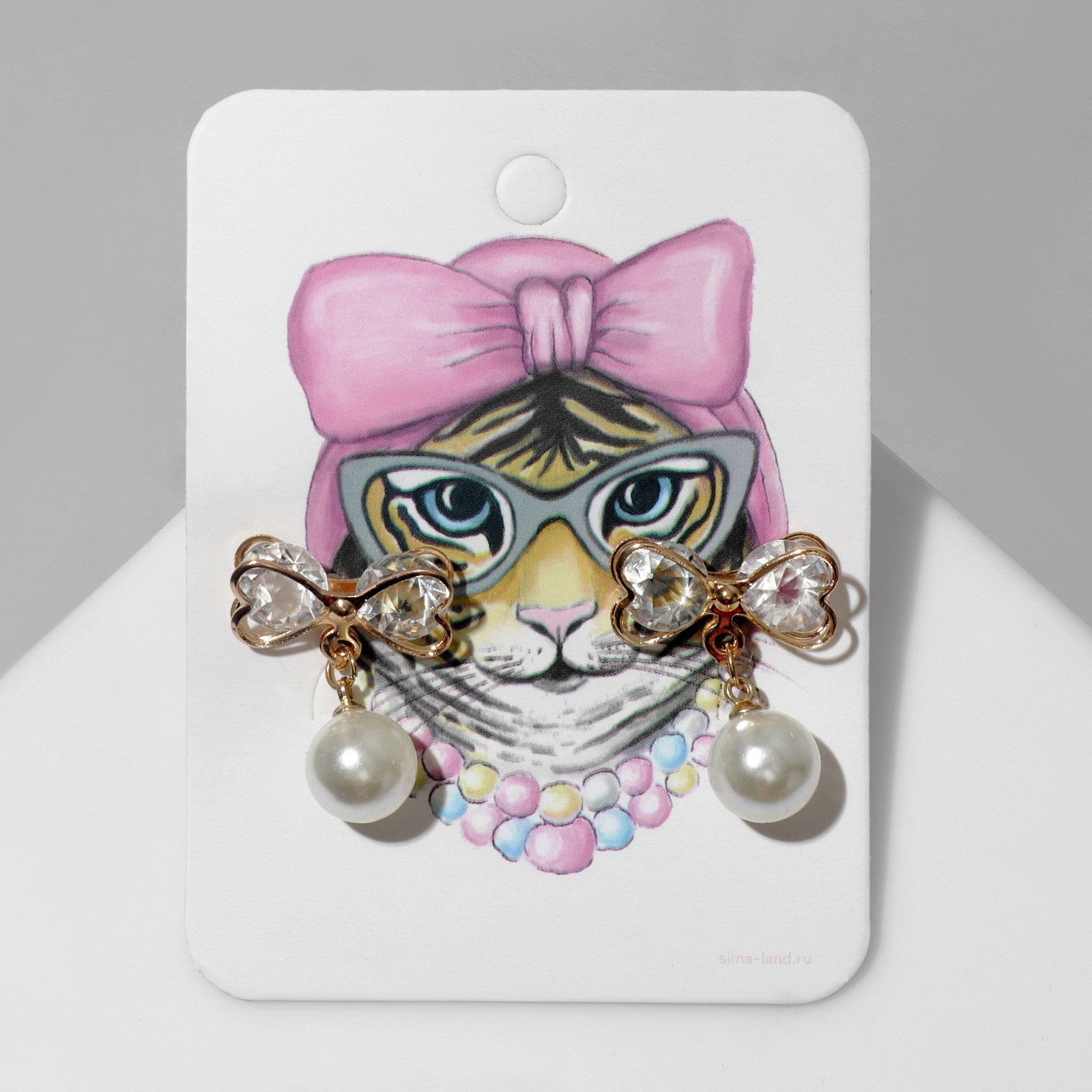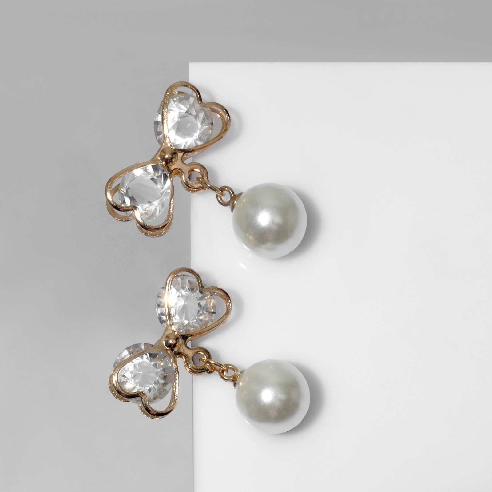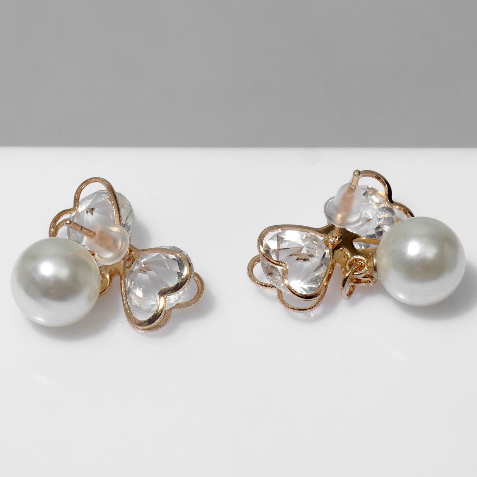 Серьги с жемчугом "Бантик" с бусиной, цвет белый в золоте, 2x3x1.5 см., Queen fair, Китай