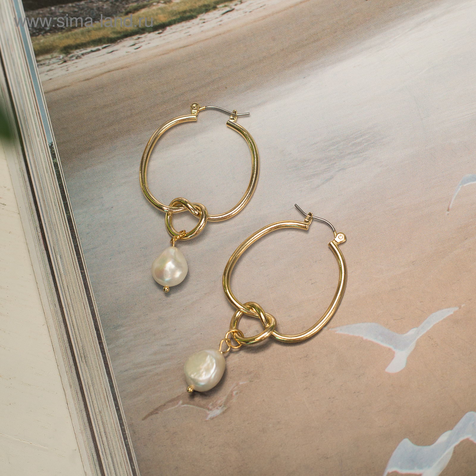 Серьги с жемчугом "Эксклюзив" узелок с бусиной, цвет белый в золоте, 3x5.7x0.5 см., QF, Китай