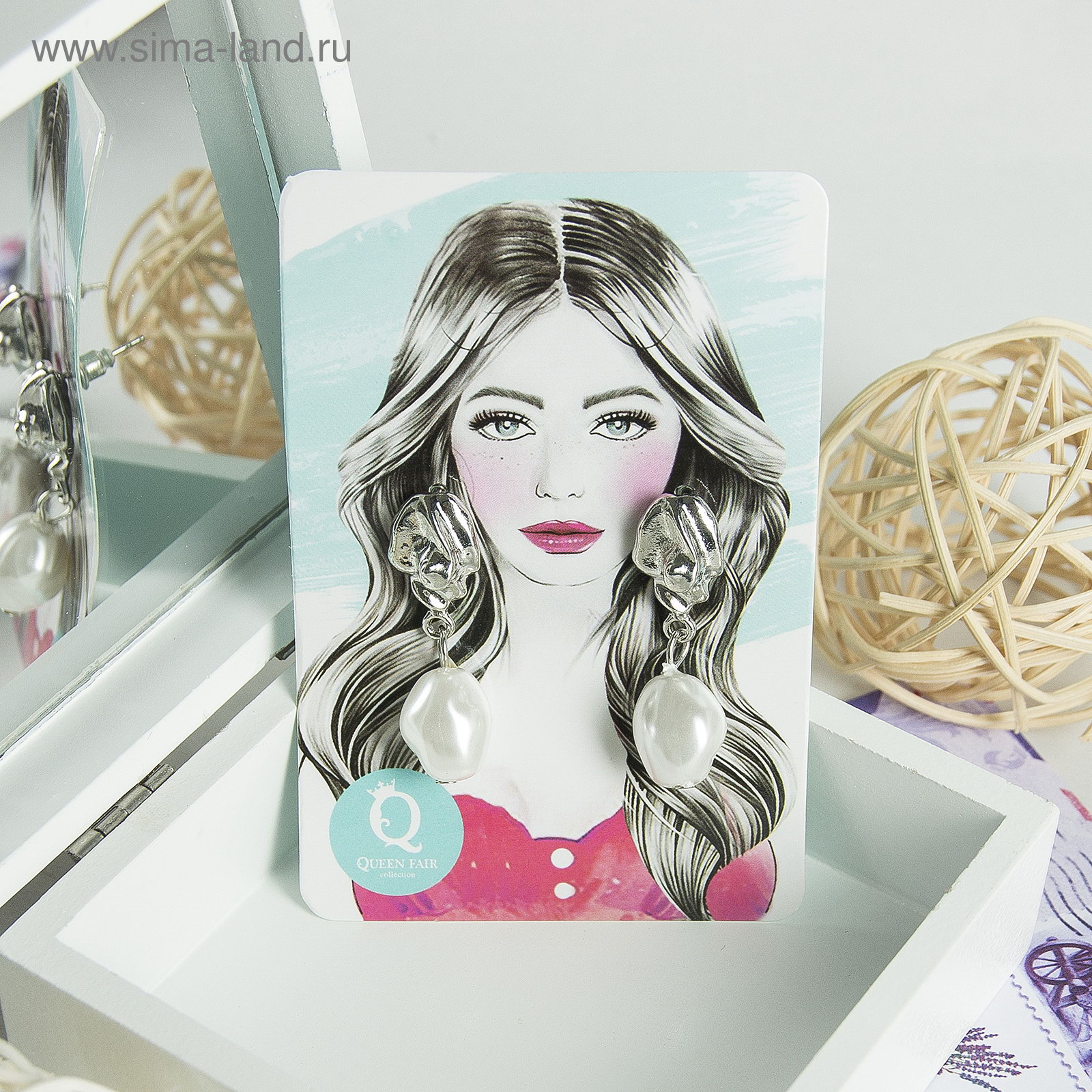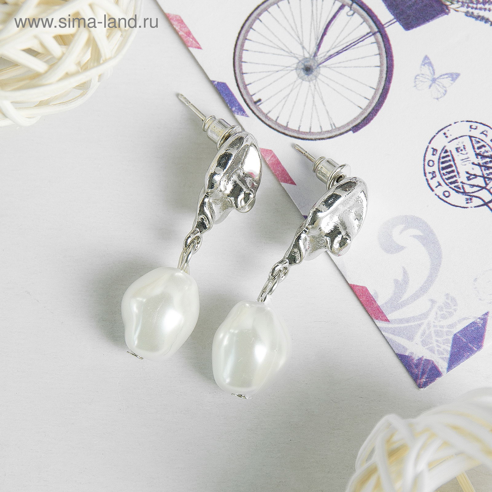 Серьги с жемчугом Girl бусина, цвет белый в серебре, 1.3x4x1.3 см., QF, Китай