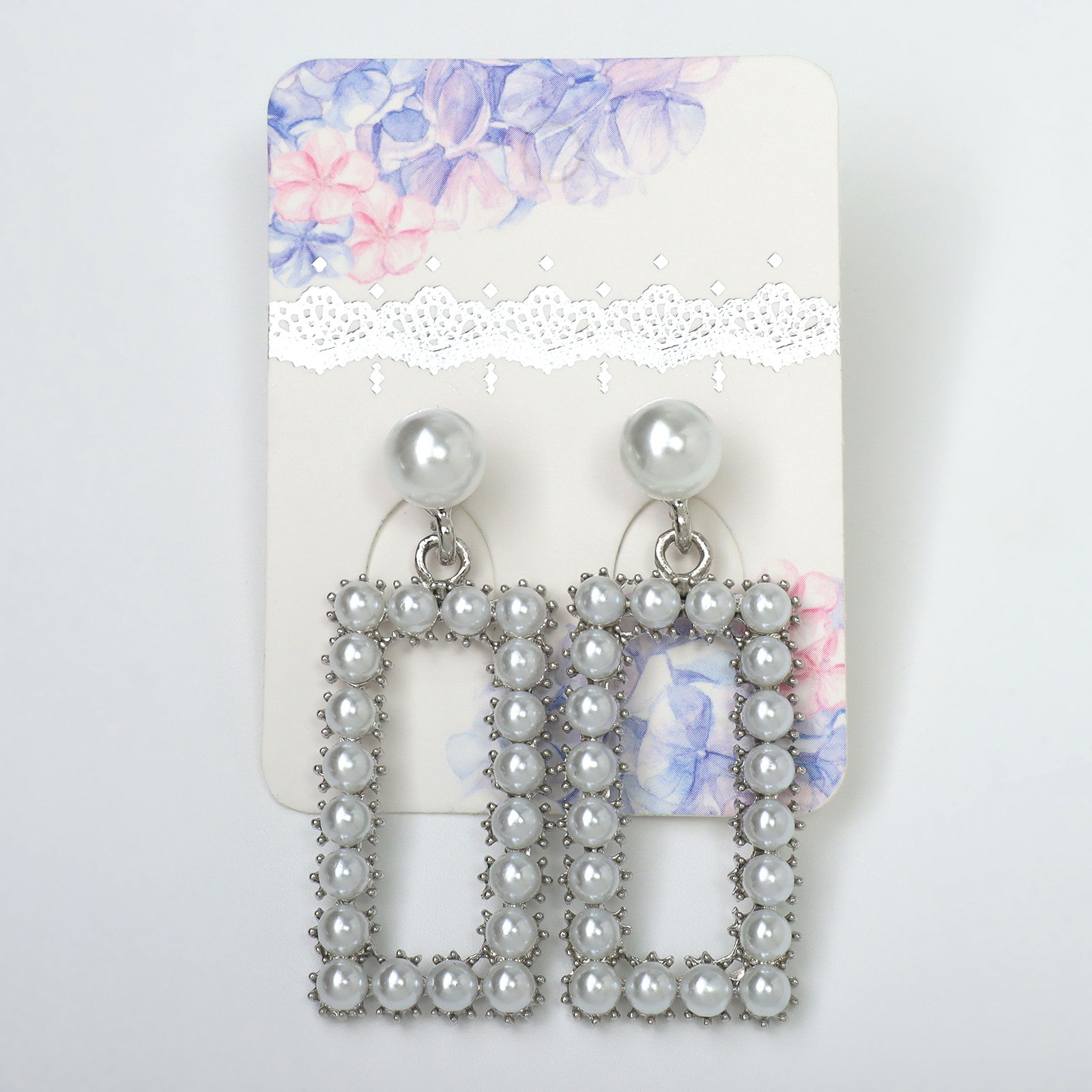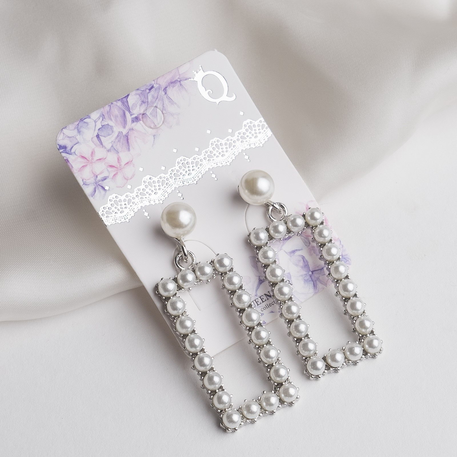 Серьги с жемчугом "Нежность" полый прямоугольник, цвет белый в серебре, 2.7x5x1 см., QF, Китай