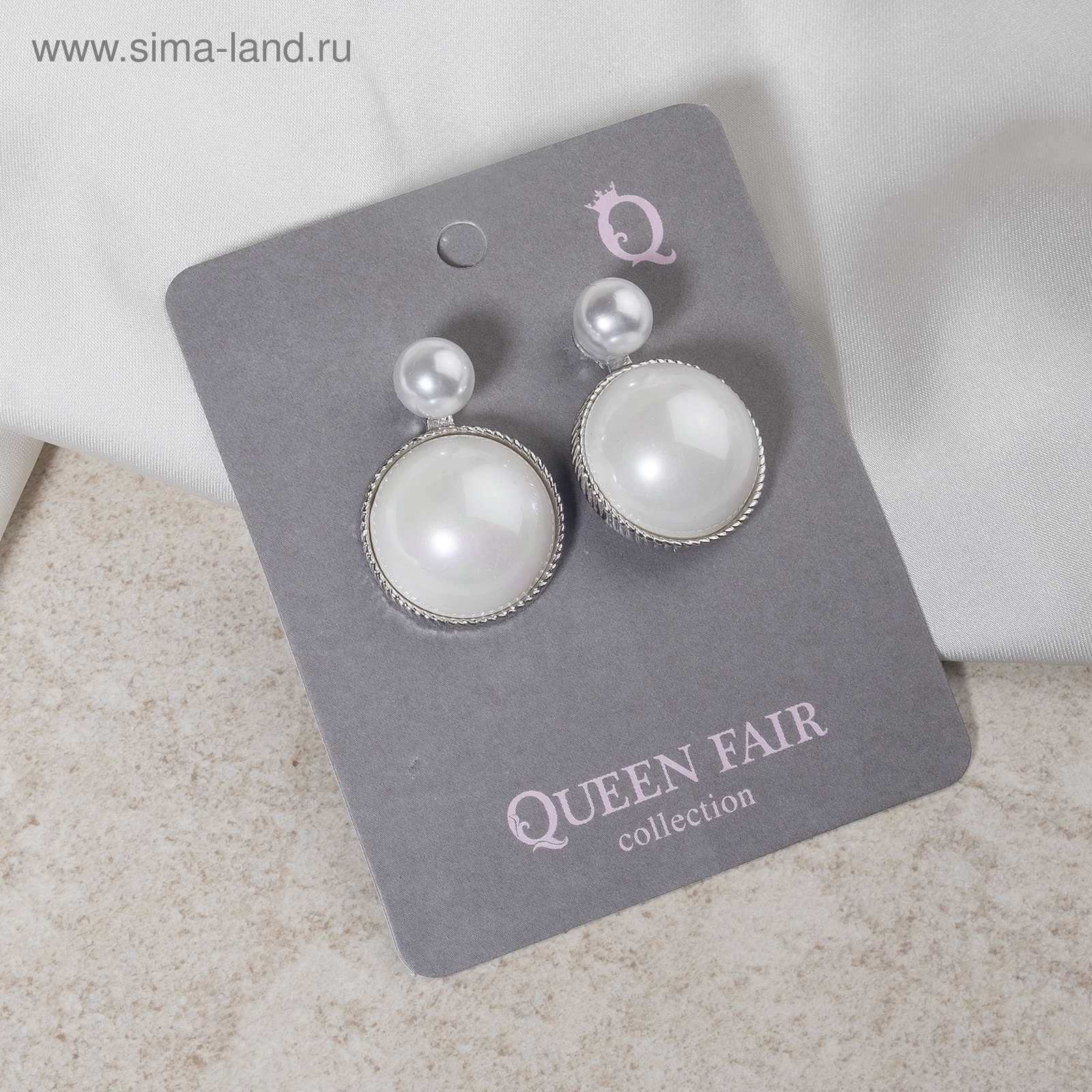 Серьги с жемчугом "Великолепие" два круга, цвет белый в серебре, 2x2.6x1.4 см., QF, Китай