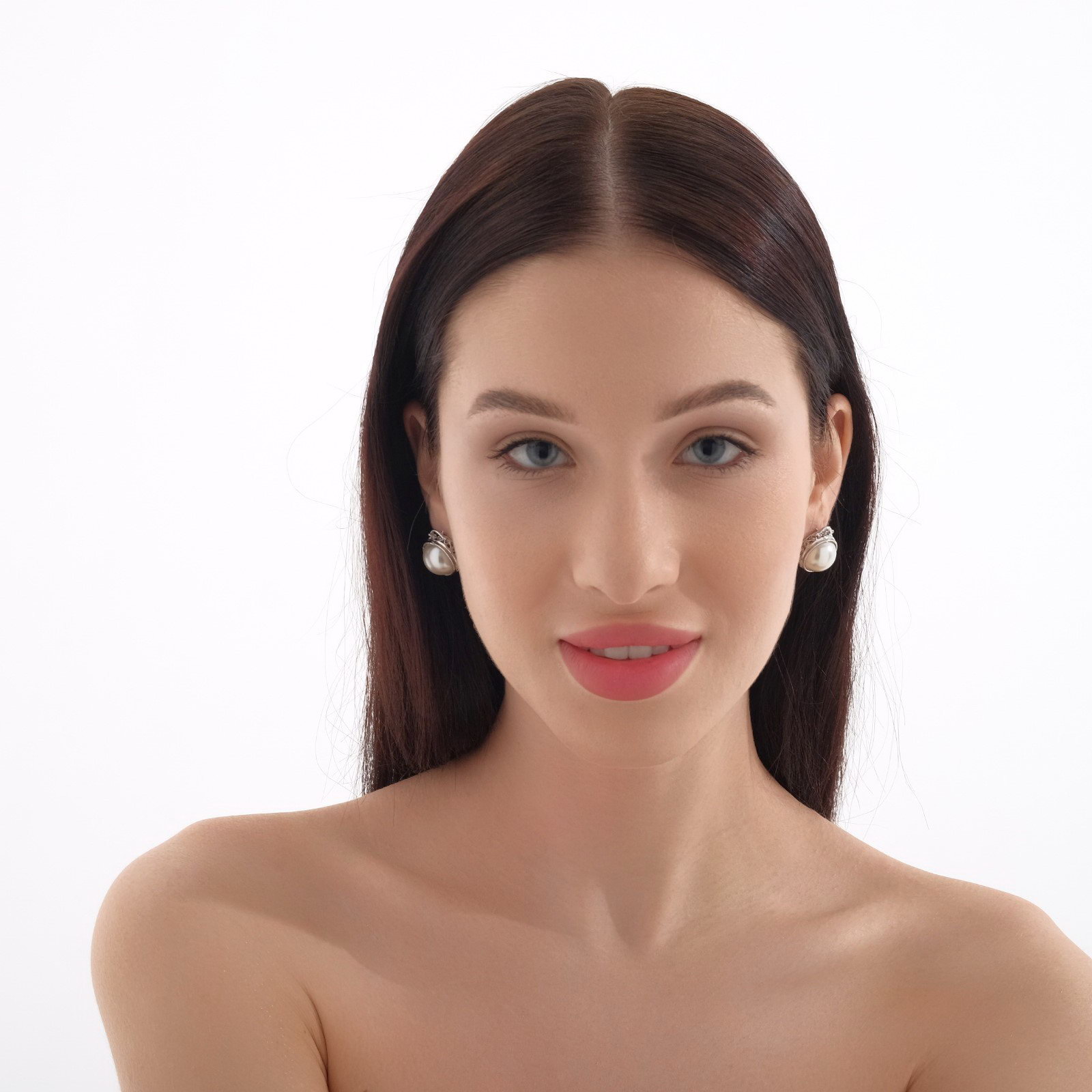 Серьги с жемчугом "Эдель" круг классика, цвет белый в серебре, 1.5x2x1 см., QF, Китай