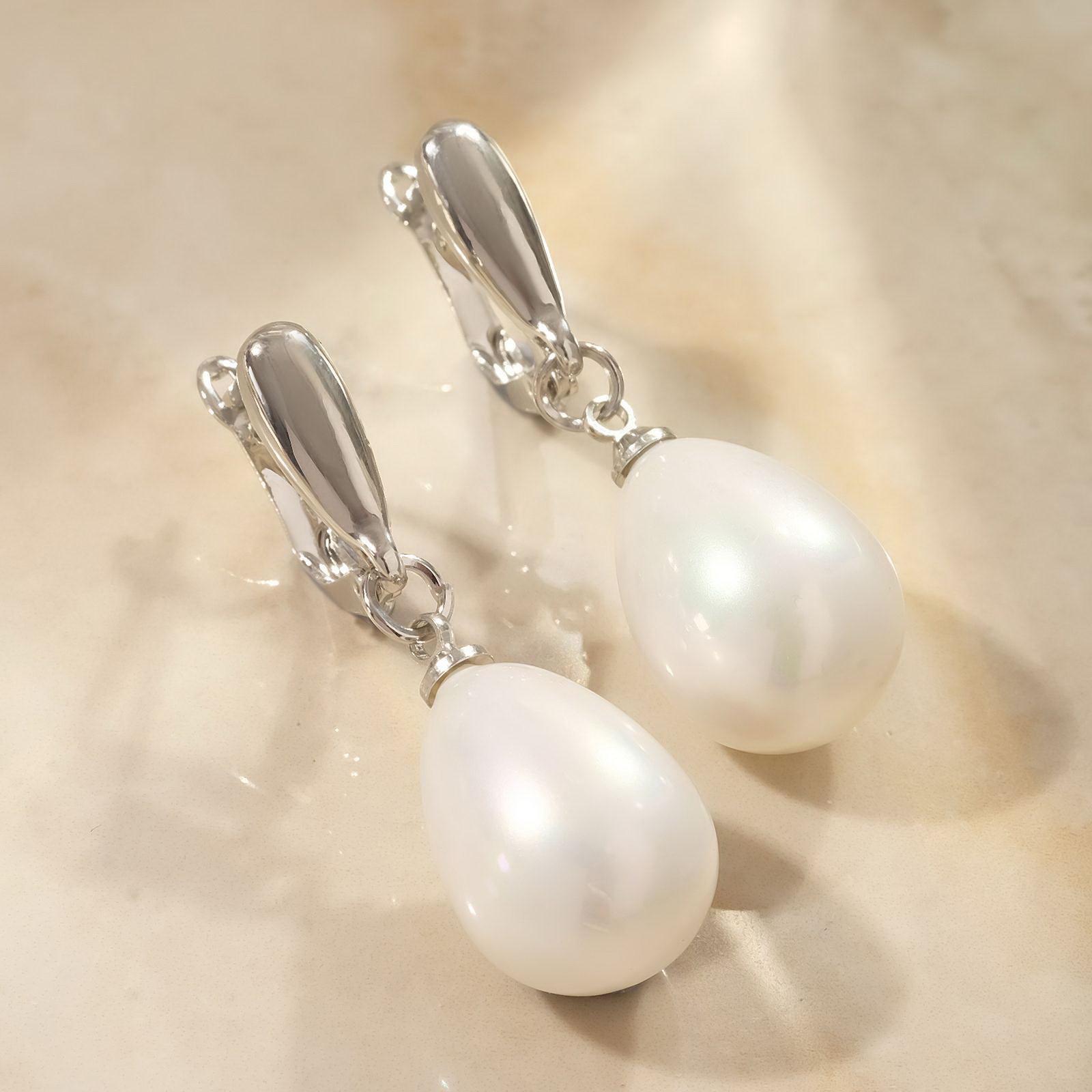 Серьги с жемчугом "Грейс" пухлая капля, цвет белый в серебре, 1.3x3.5x1.3 см., QF, Китай