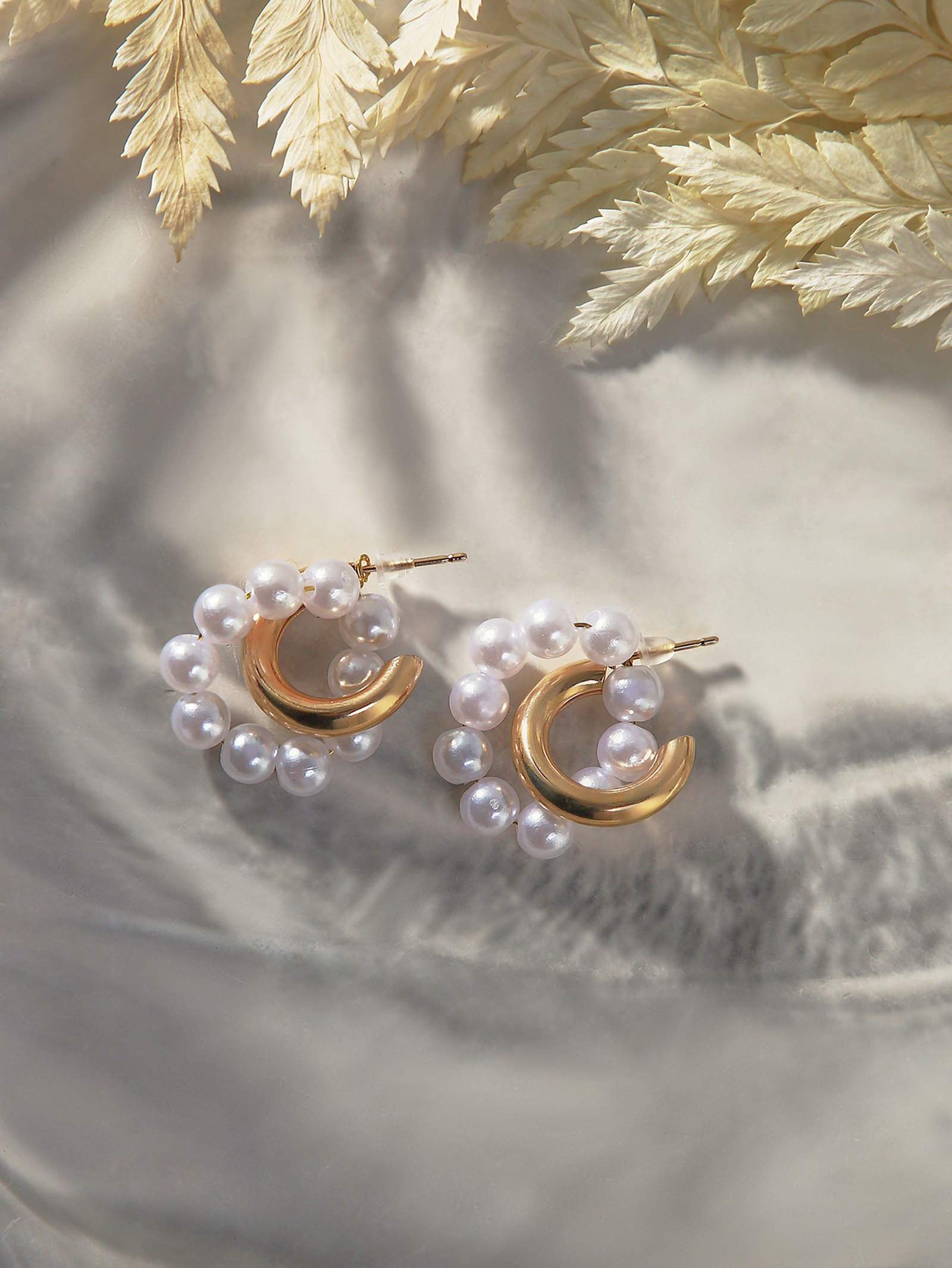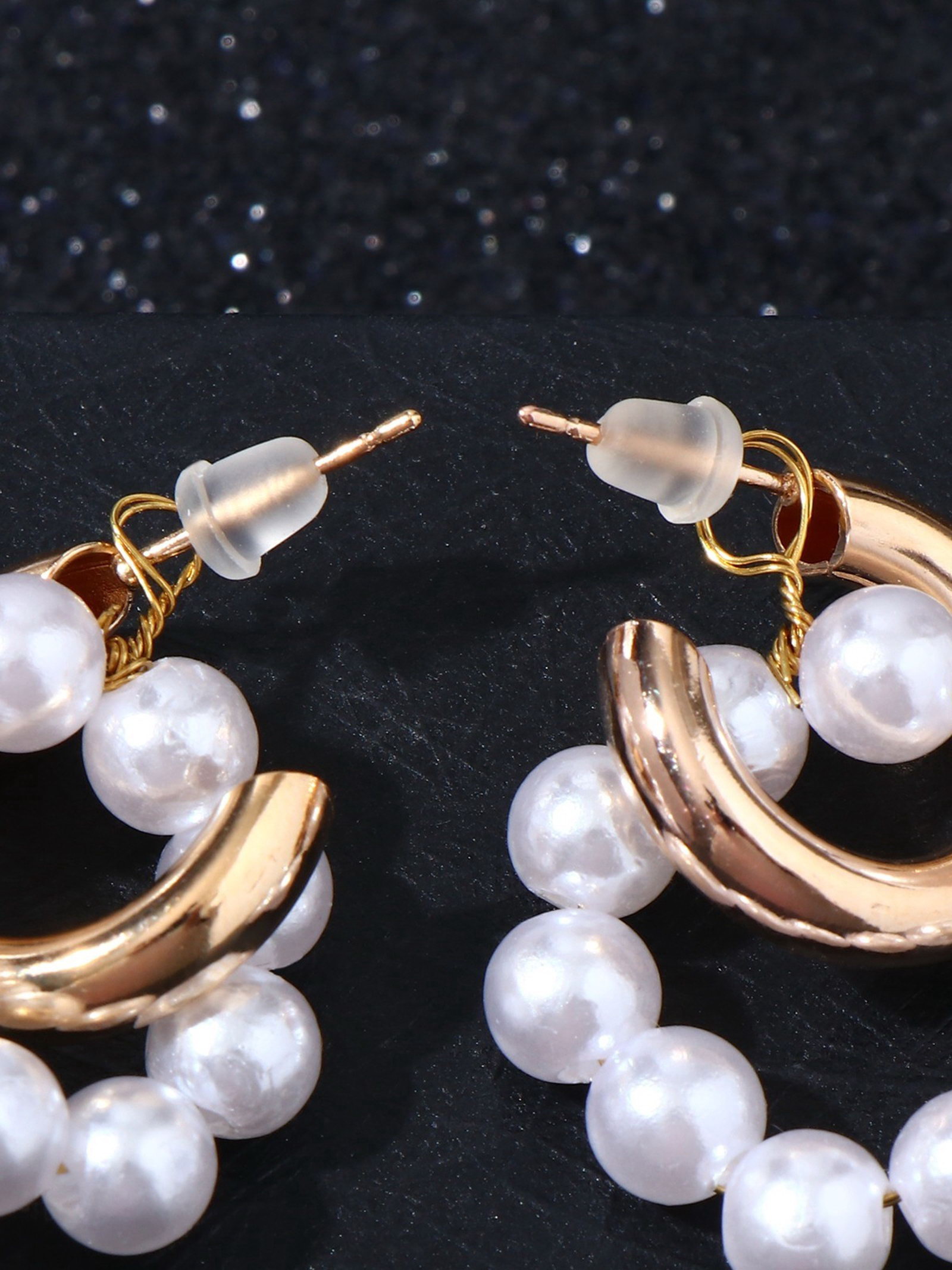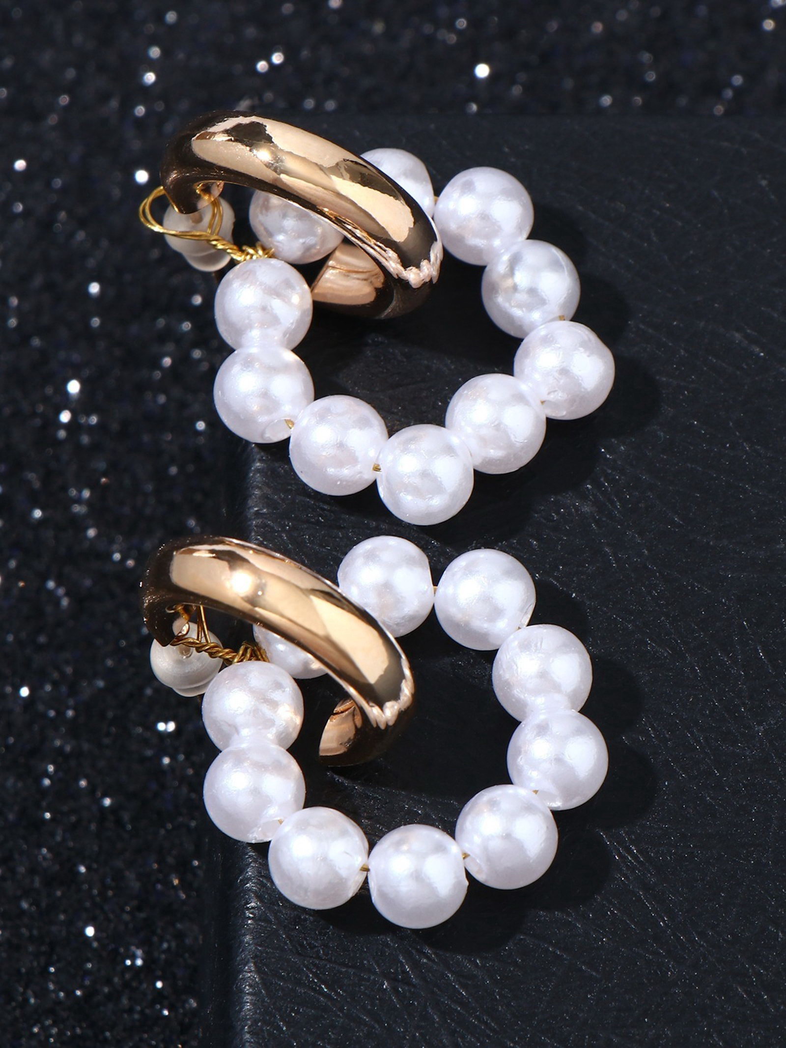 Серьги со съёмным элементом "Трансформер" два жемчужных кольца, цвет белый в золоте, 2x3x2.5 см., QF, Китай