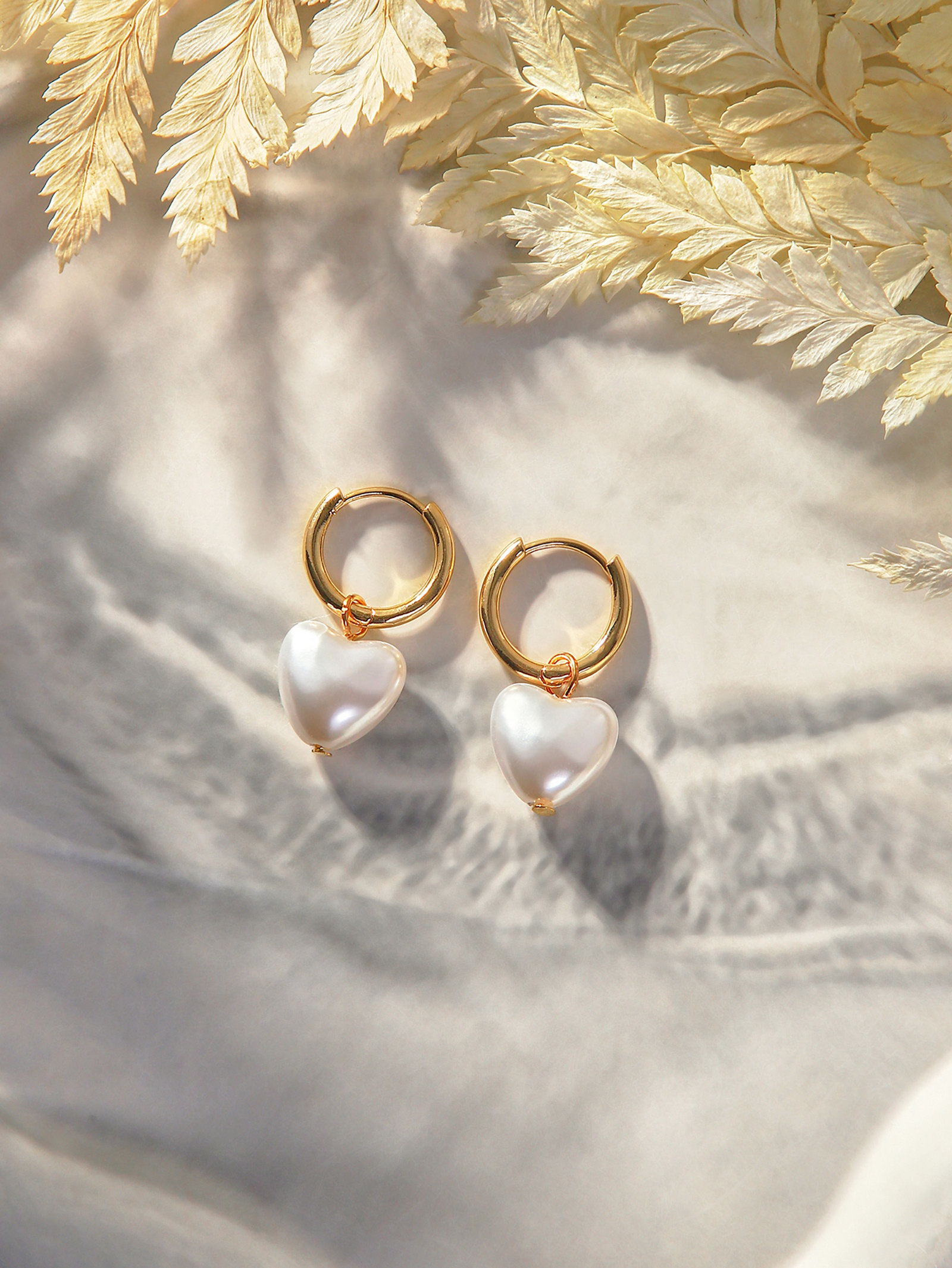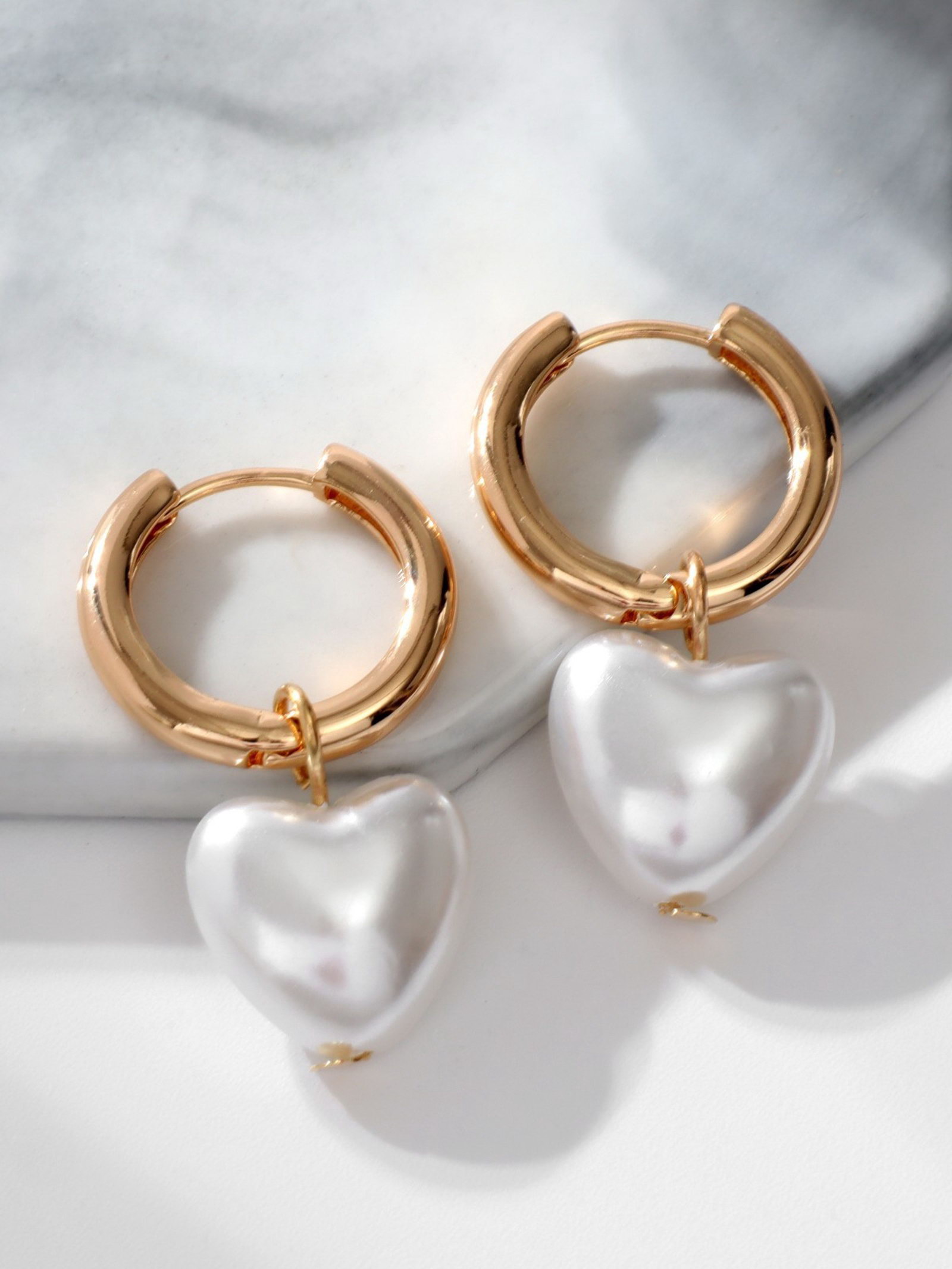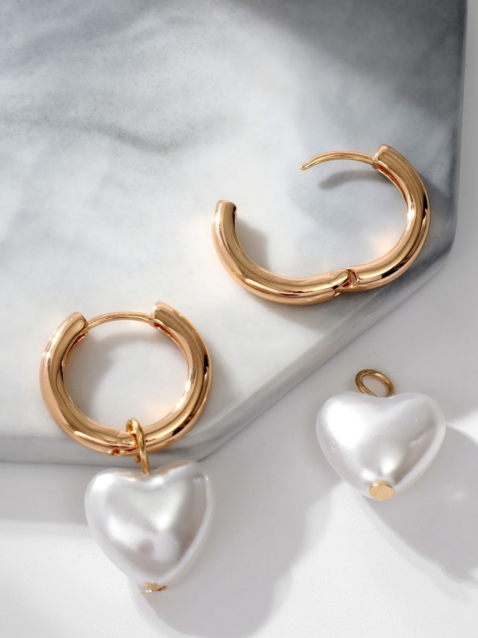 Серьги со съёмным элементом "Трансформер" сердечко жемчужное, цвет белый в золоте, 1.3x3.2x1.8 см., QF, Китай