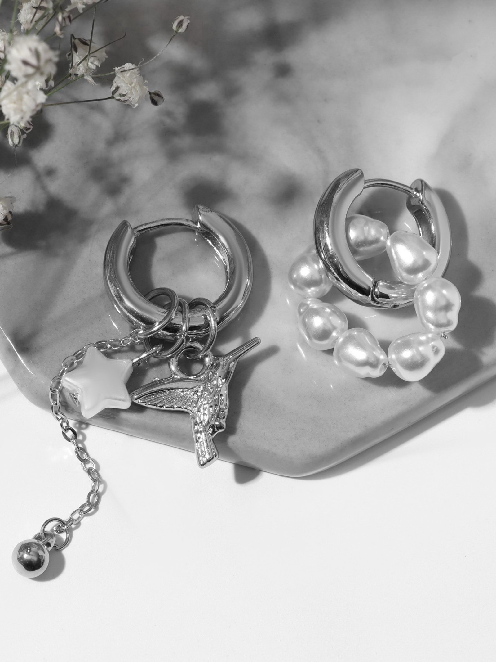 Серьги со съёмным элементом "Трансформер" птица, белые в серебре, 0.5x1.3x8.2 см., QF, Китай