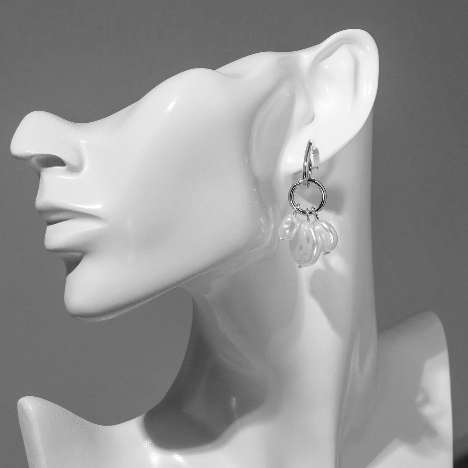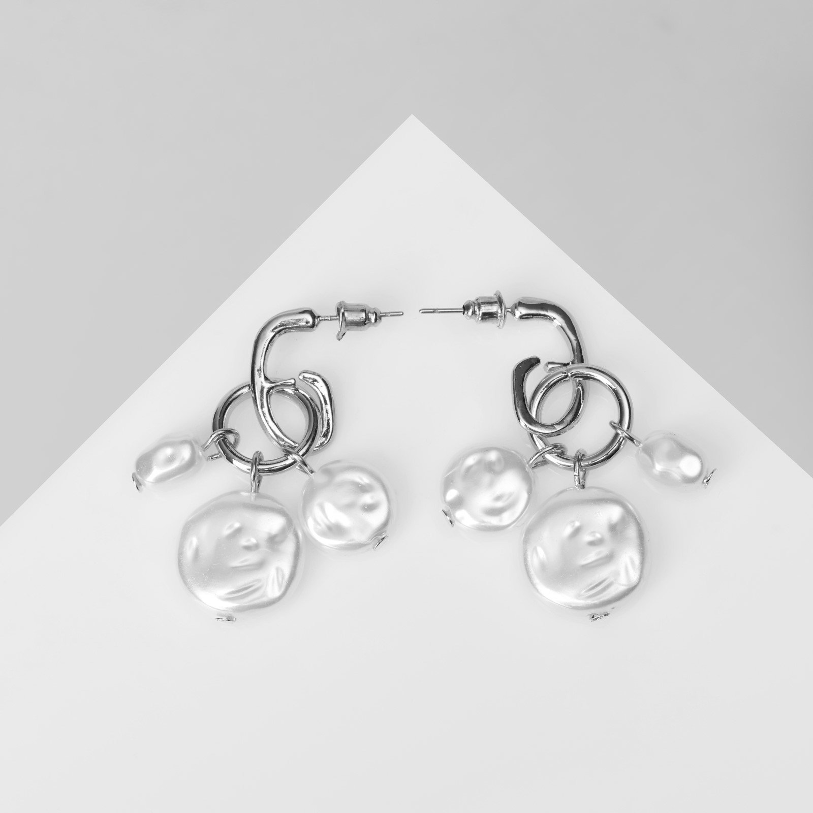 Серьги с жемчугом "Артемида" трио, цвет белый в серебре, 3x4.5x1 см., QF, Китай