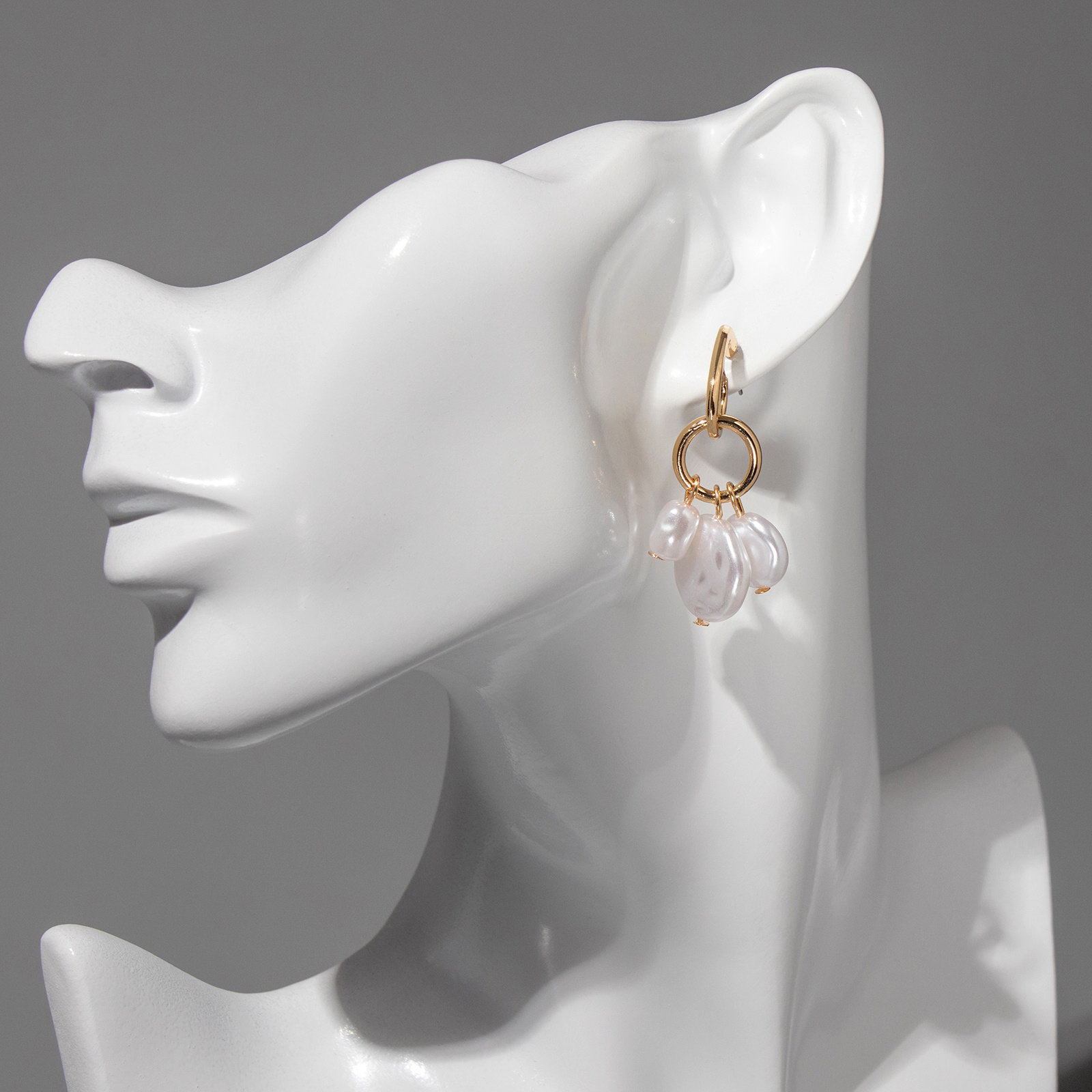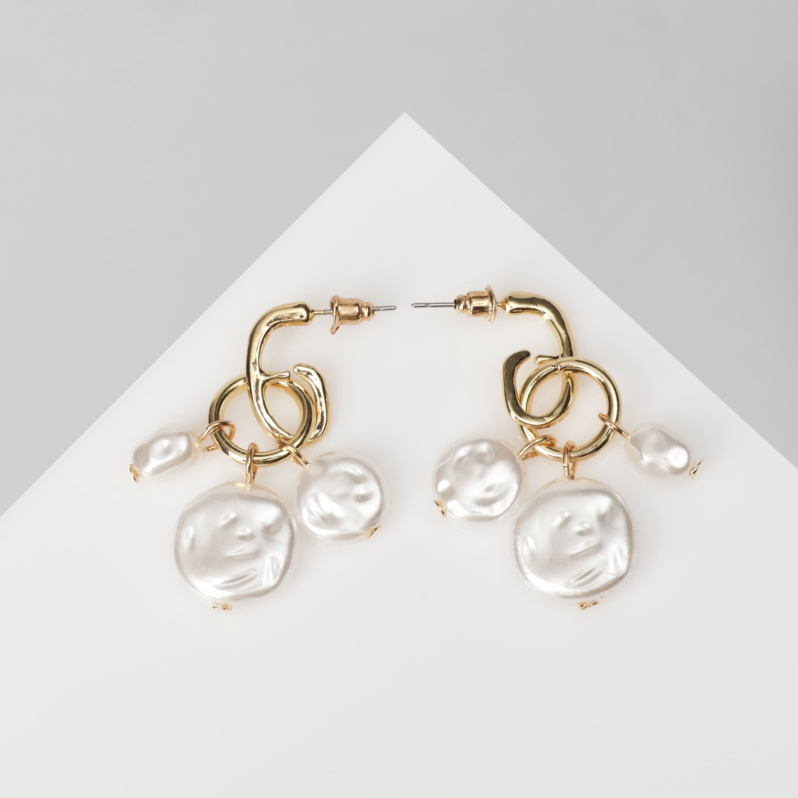 Серьги с жемчугом "Артемида" трио, цвет белый в золоте, 3x4.5x1 см., QF, Китай