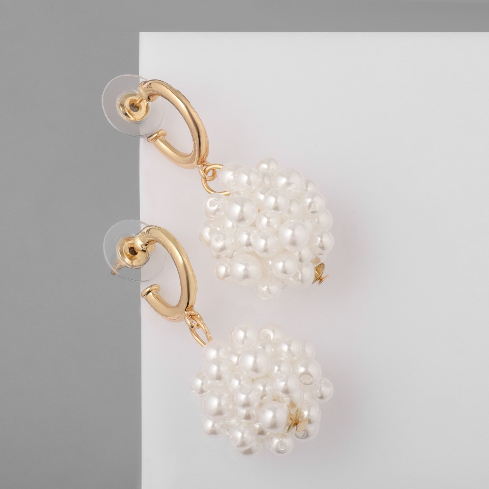Серьги с жемчугом "Амели", цвет белый в золоте, 2.2x4x2.2 см., QF, Китай