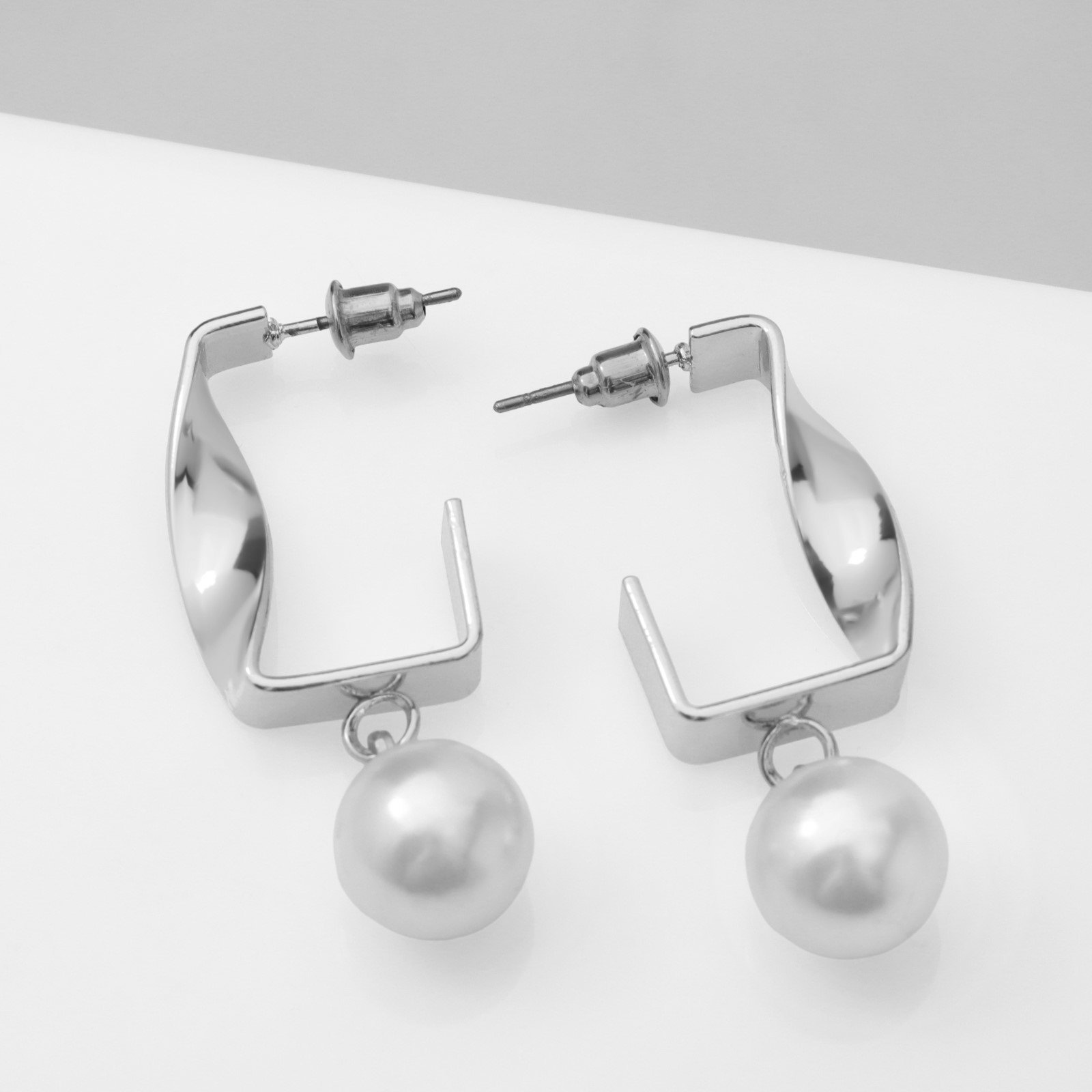 Серьги с жемчугом "Абстракция" завиток, цвет серебро, 4.2x1.5x0.6 см., QF, Китай