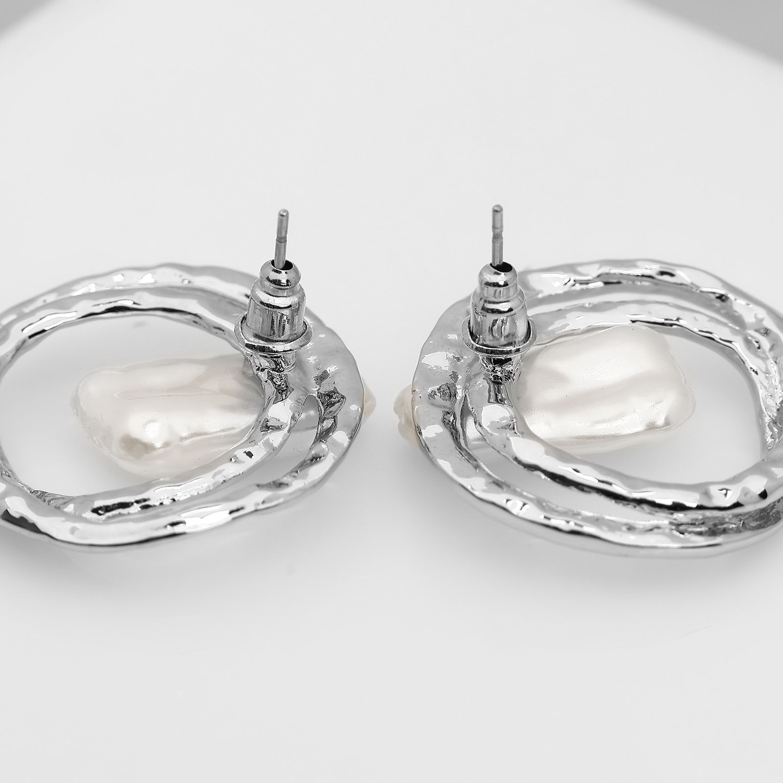 Серьги с жемчугом "Бусина" двойной круг, цвет серебро, 2.7x2.7x0.5 см., QF, Китай