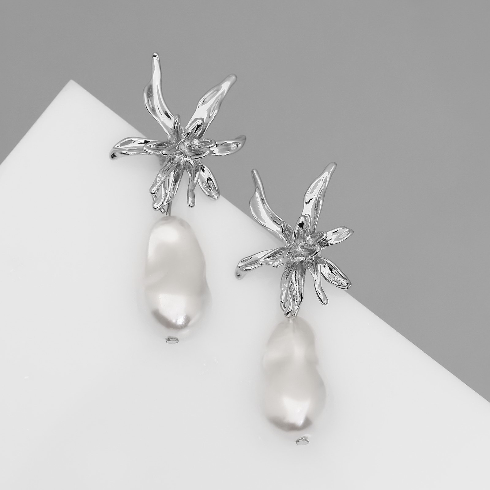 Серьги с жемчугом "Бусина" груша с цветком, цвет серебро, 2.5x5x0.8 см., QF, Китай