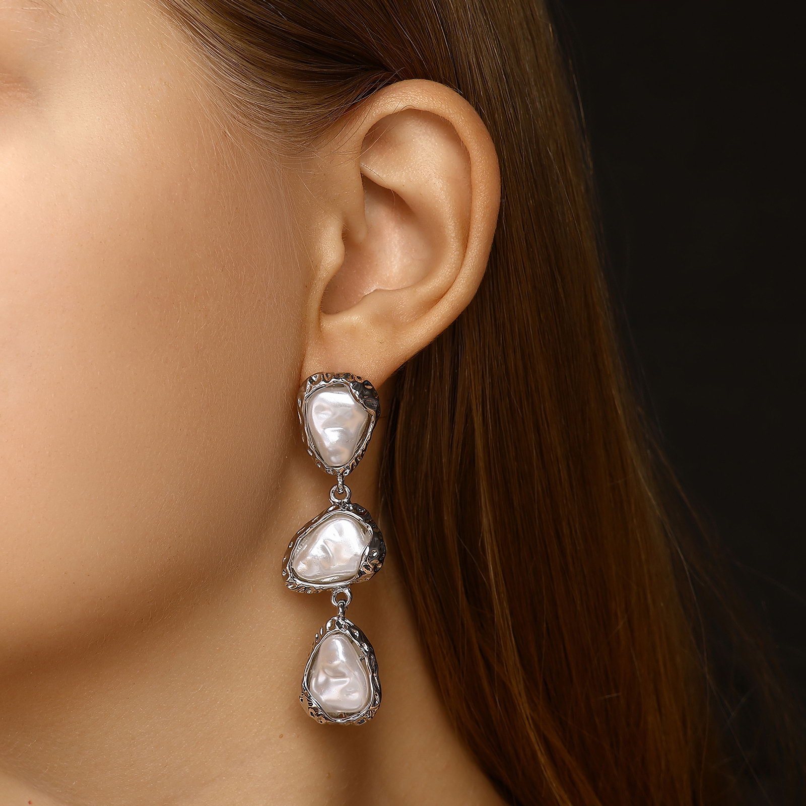 Серьги с жемчугом "Гавань" сознание, цвет серебро, 1.8x6x0.4 см., QF, Китай