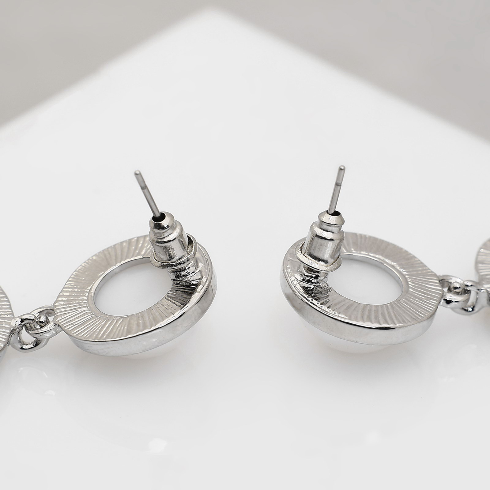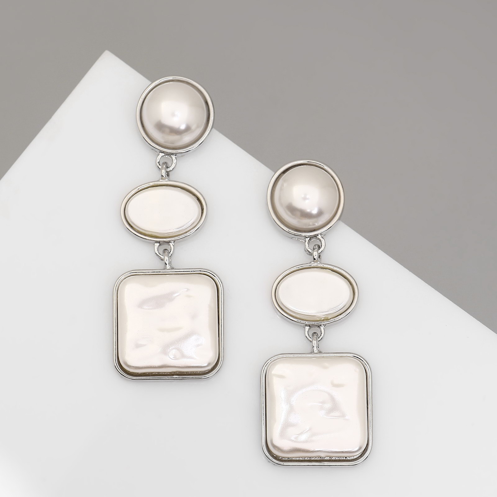 Серьги с жемчугом "Гавань" сознание, геометрия, цвет серебро, 2x6x0.5 см., QF, Китай