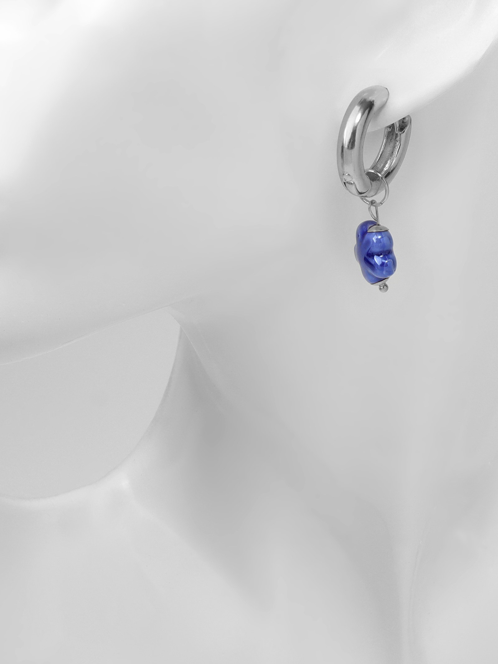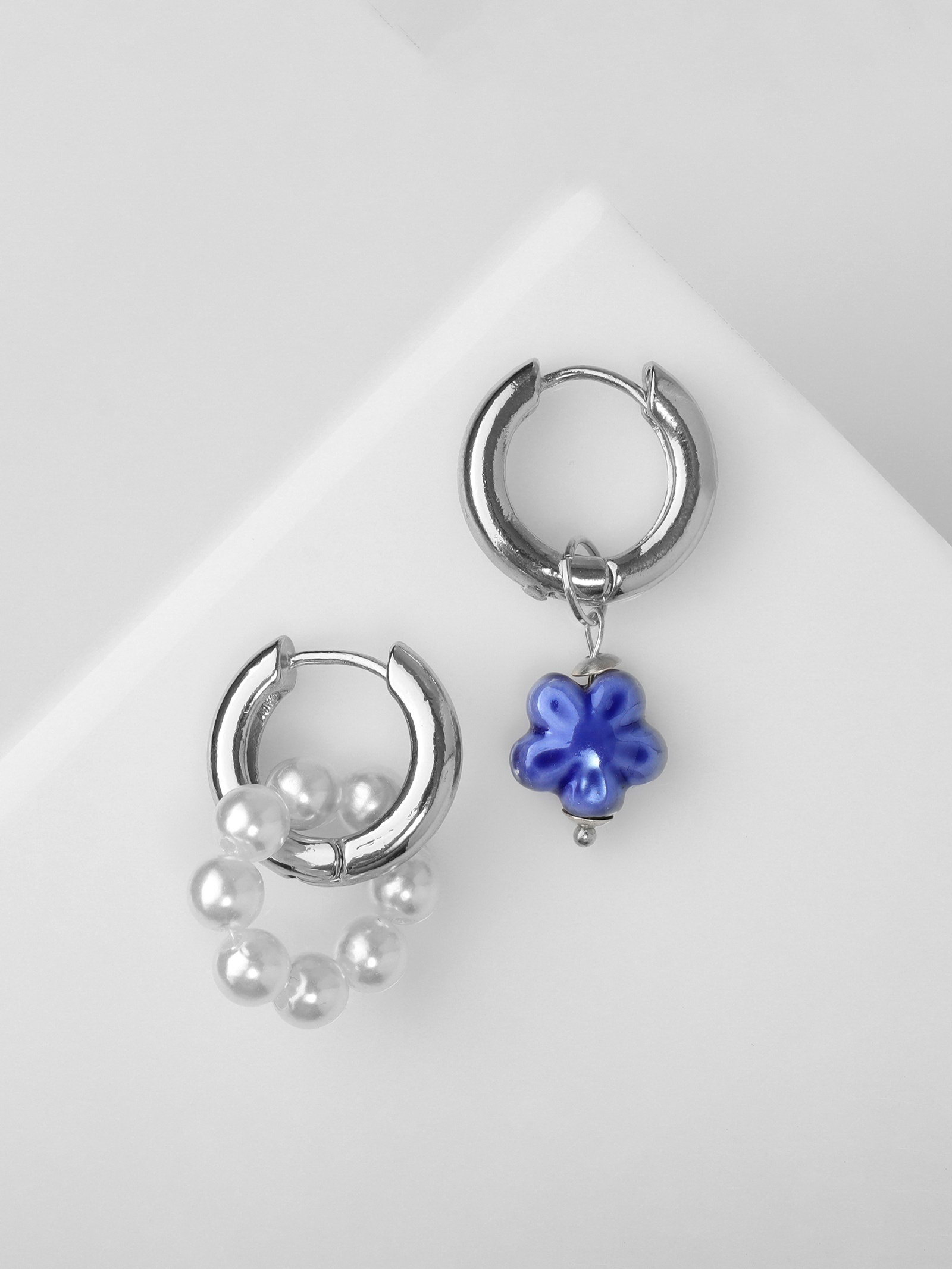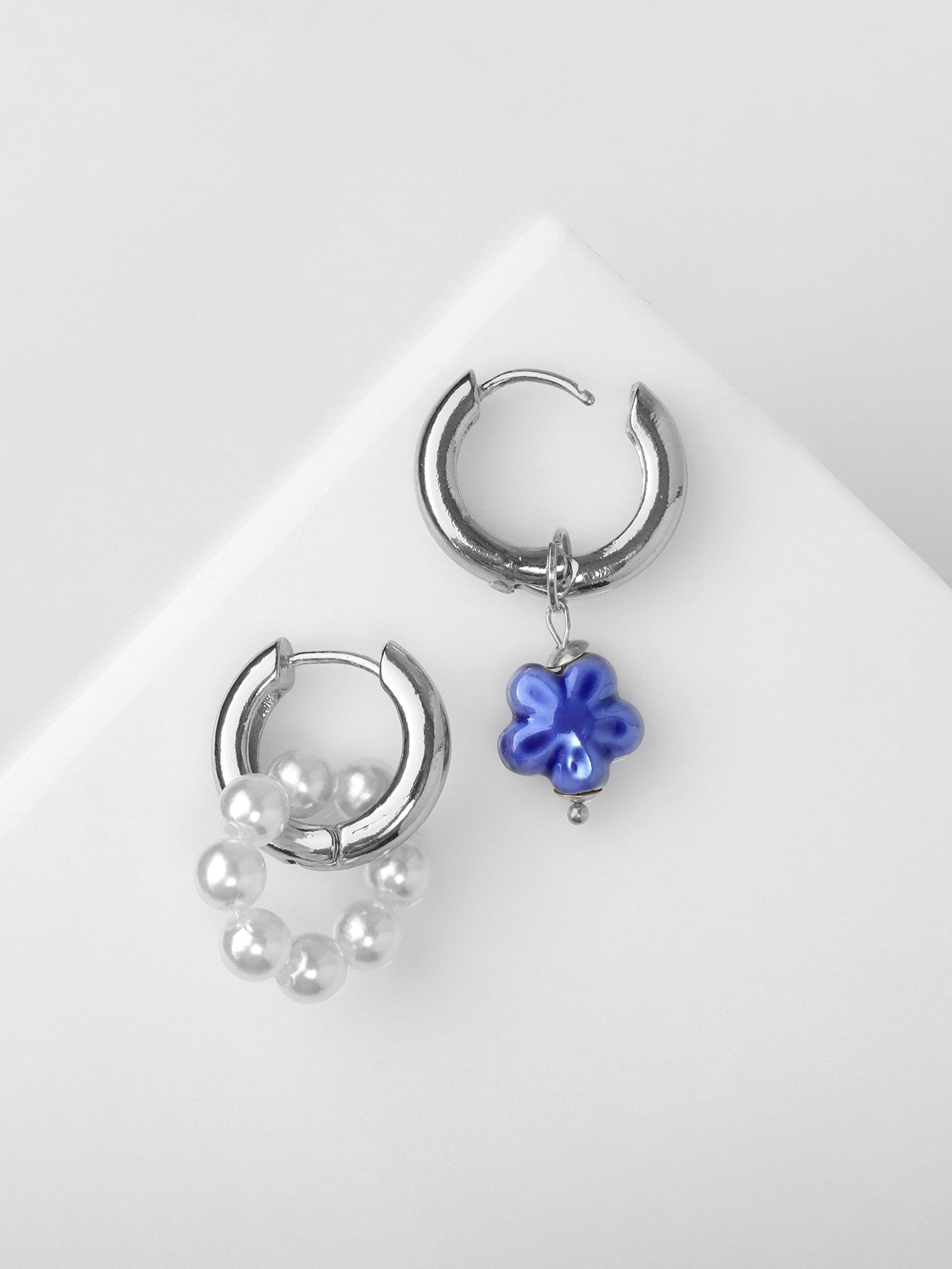 Серьги со съёмным элементом "Трансформер" цветок, цвет бело-синий в серебре, 2x4x2 см., QF, Китай