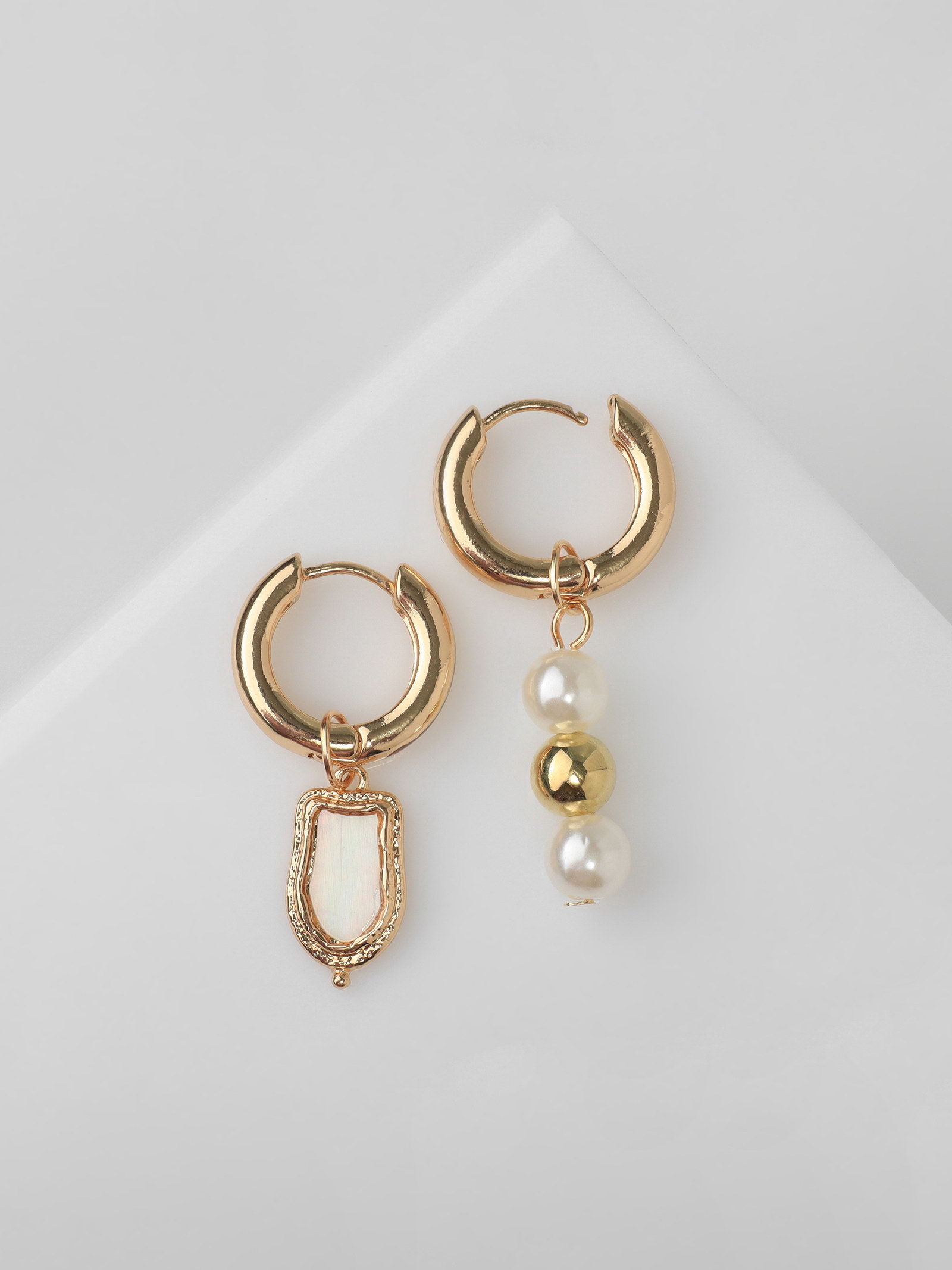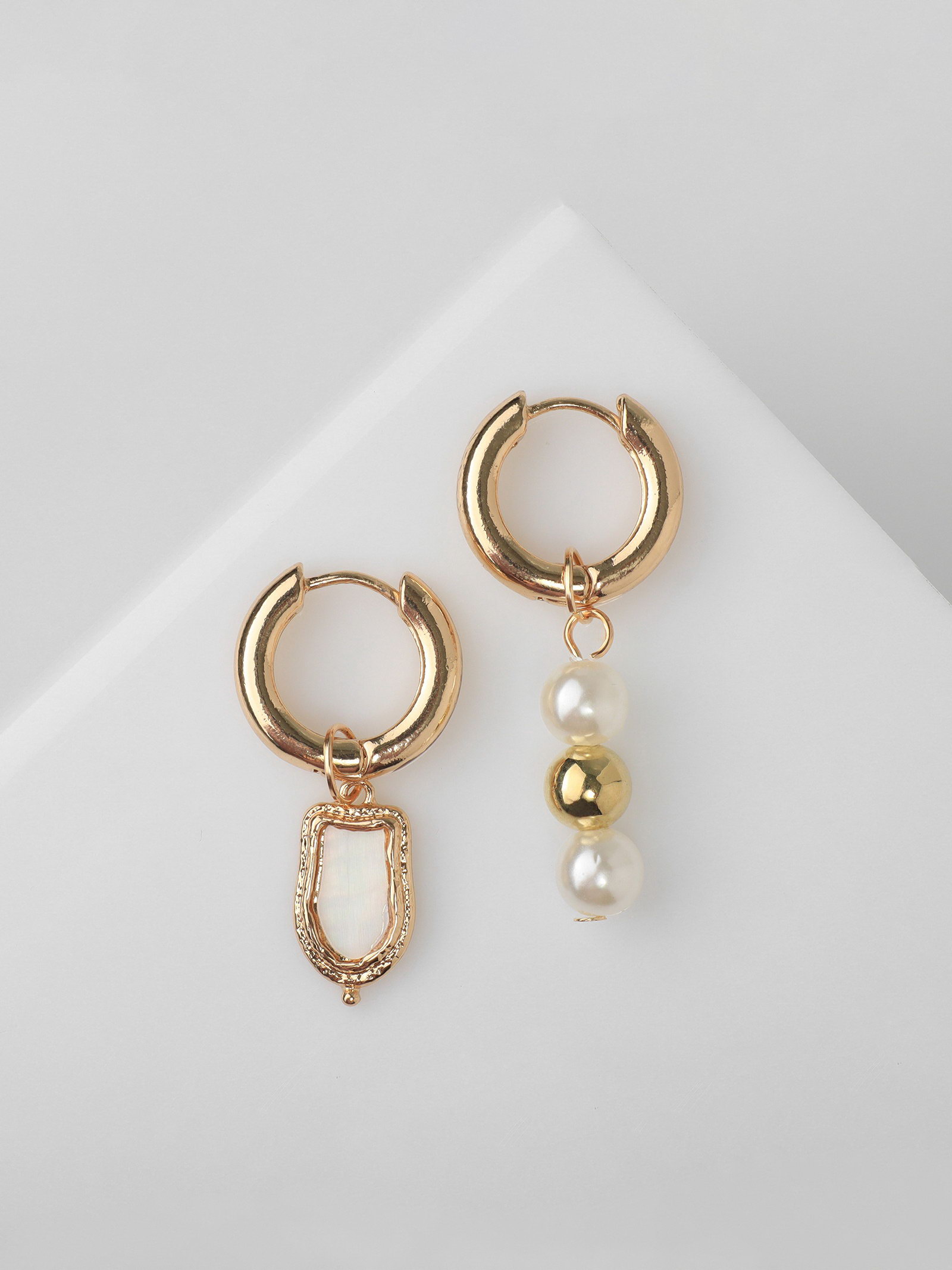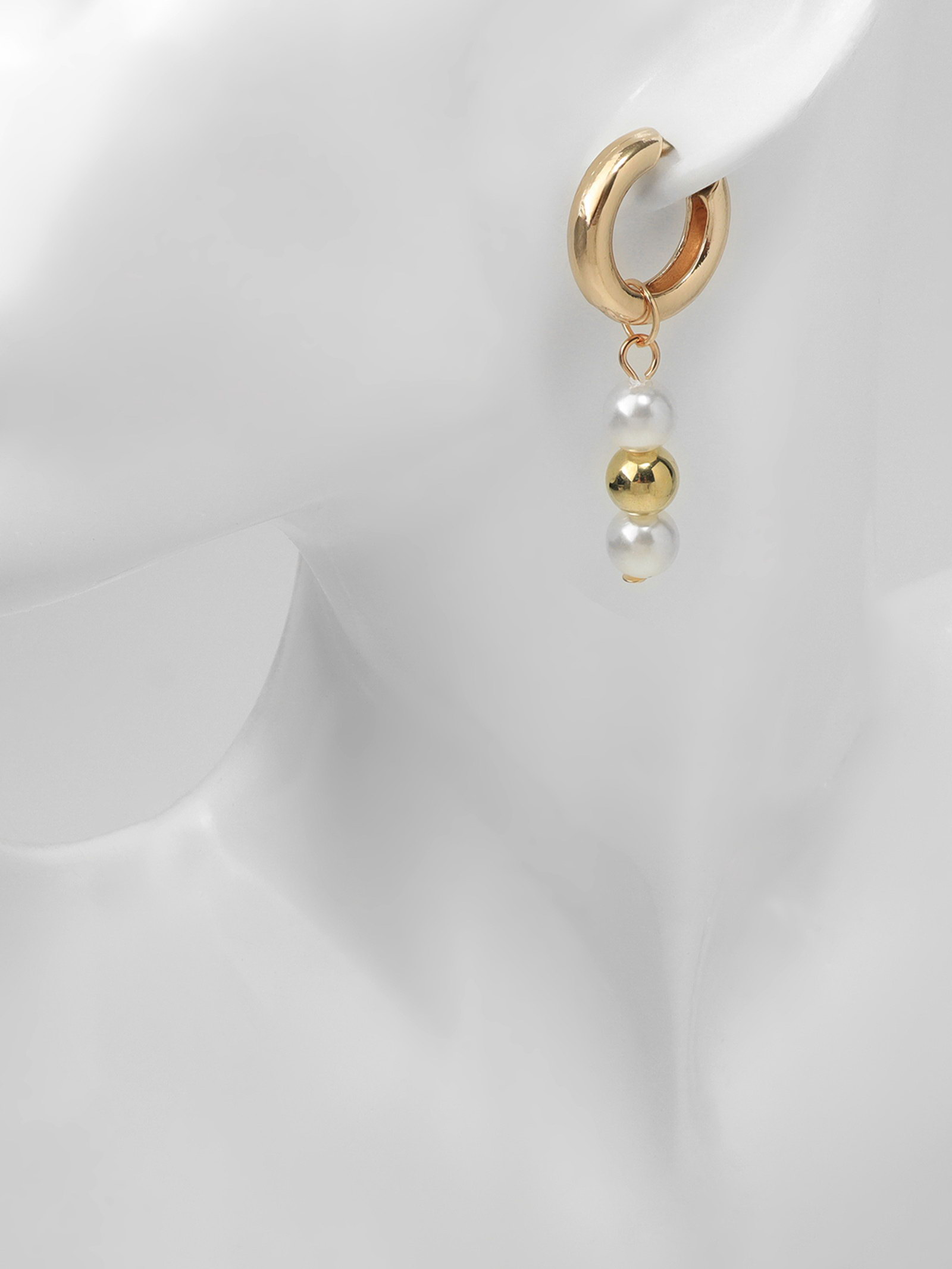 Серьги со съёмным элементом "Трансформер" бусины жемчуга, цвет белый в золоте, 1x5x2 см., QF, Китай
