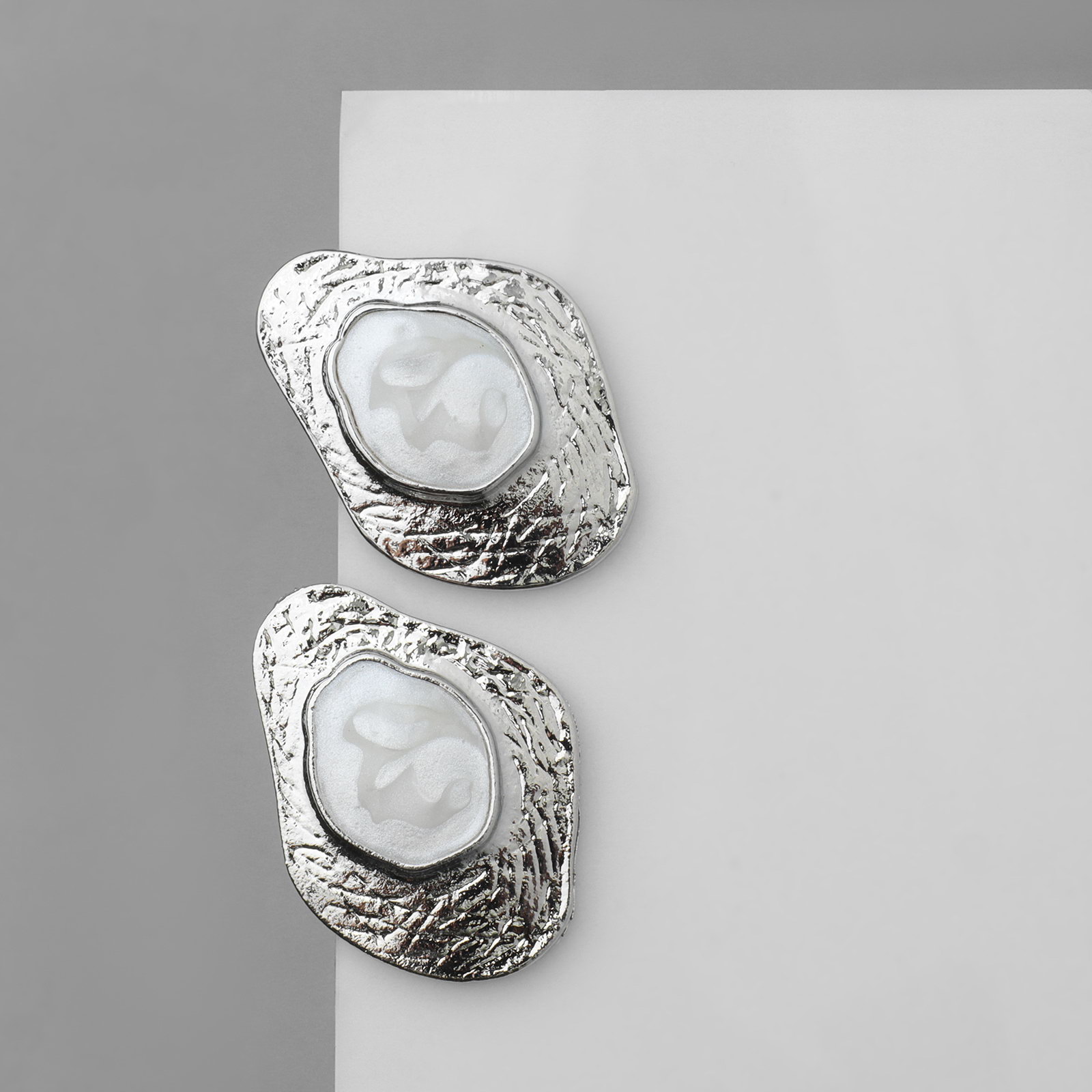 Серьги с жемчугом "Абстракция" богема, цвет серебро, 2x3x1 см., QF, Китай