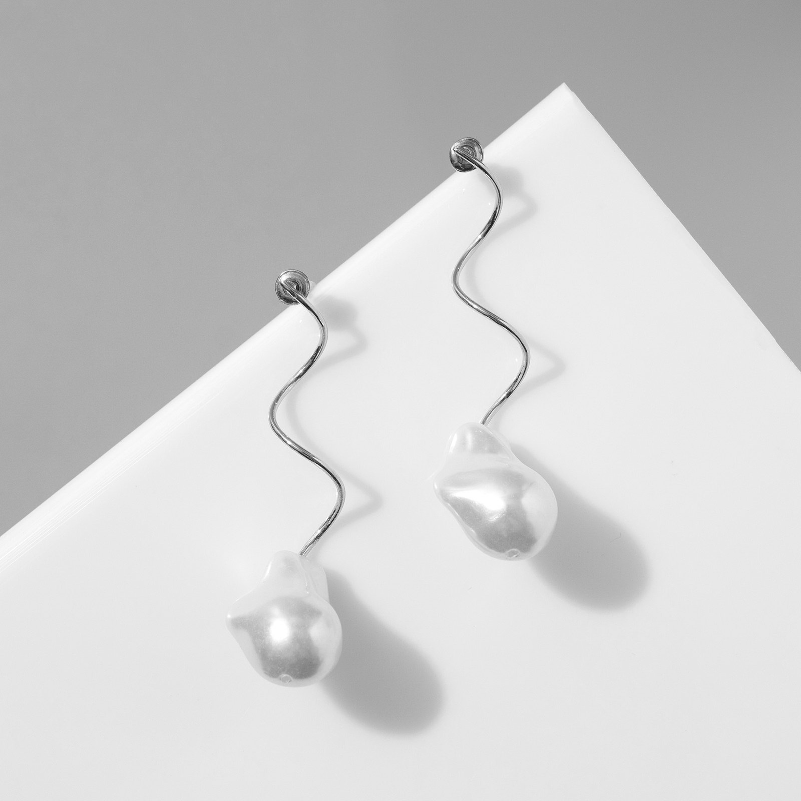 Серьги с жемчугом "Бусина" спираль, цвет серебро, 1.5x6x0.8 см., QF, Китай