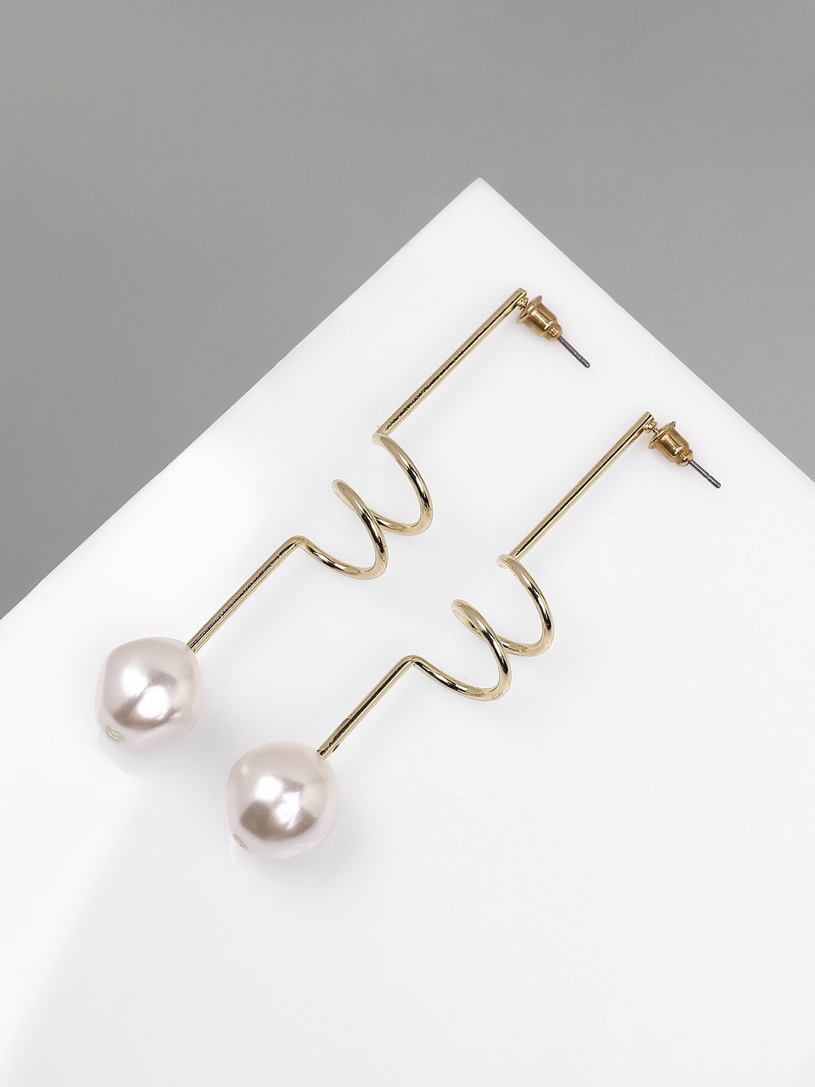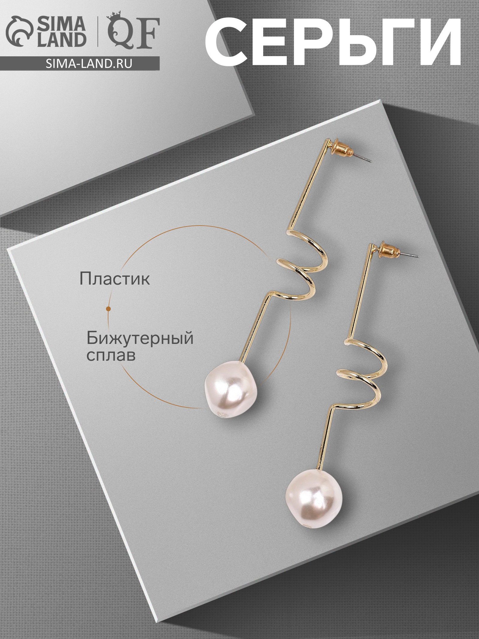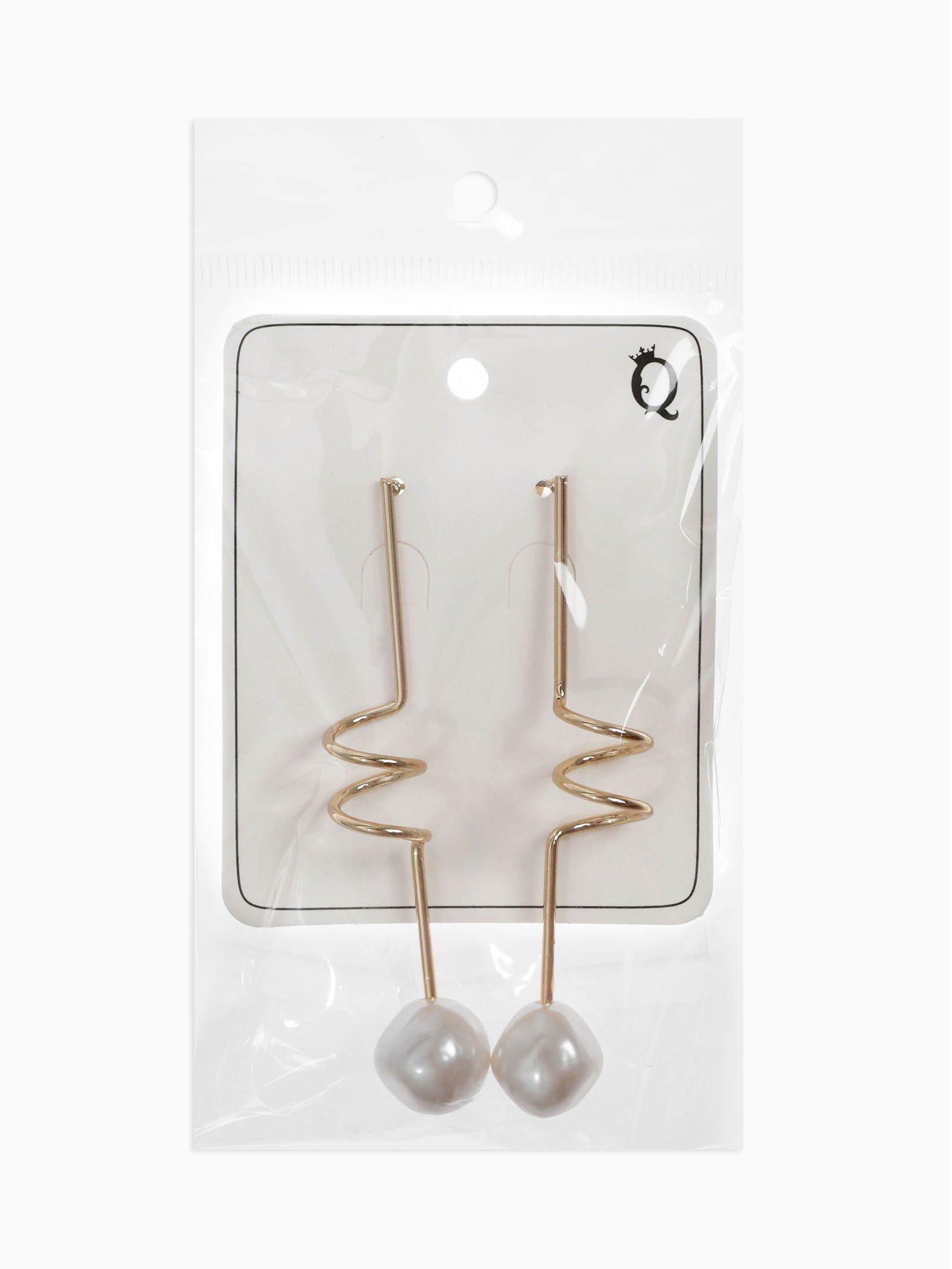 Серьги с жемчугом "Бусина" спираль мини, цвет золото, 1.5x7.3x0.5 см., QF, Китай