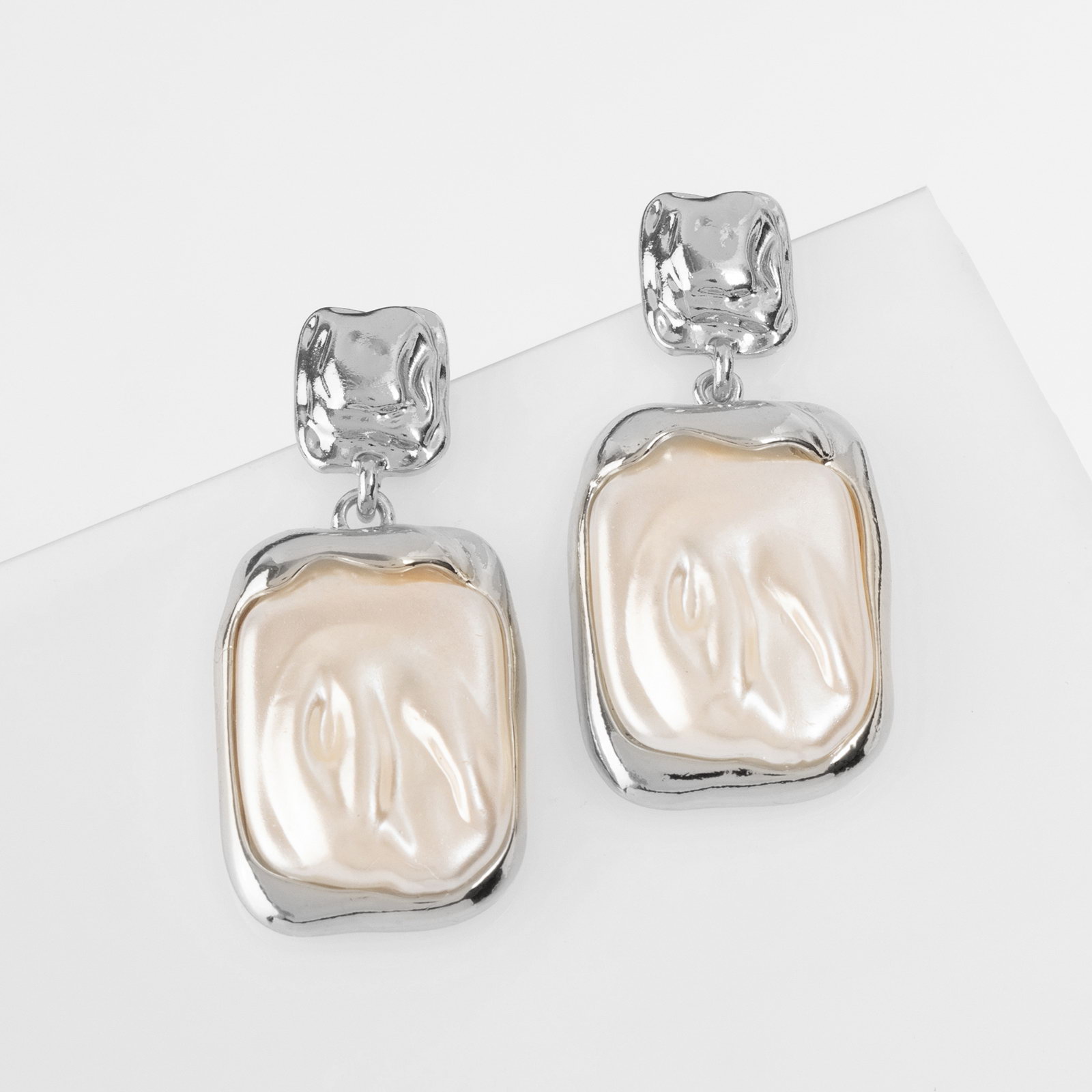 Серьги с жемчугом "Бусина" пленительность, цвет серебро, 2x4.5x0.5 см., QF, Китай