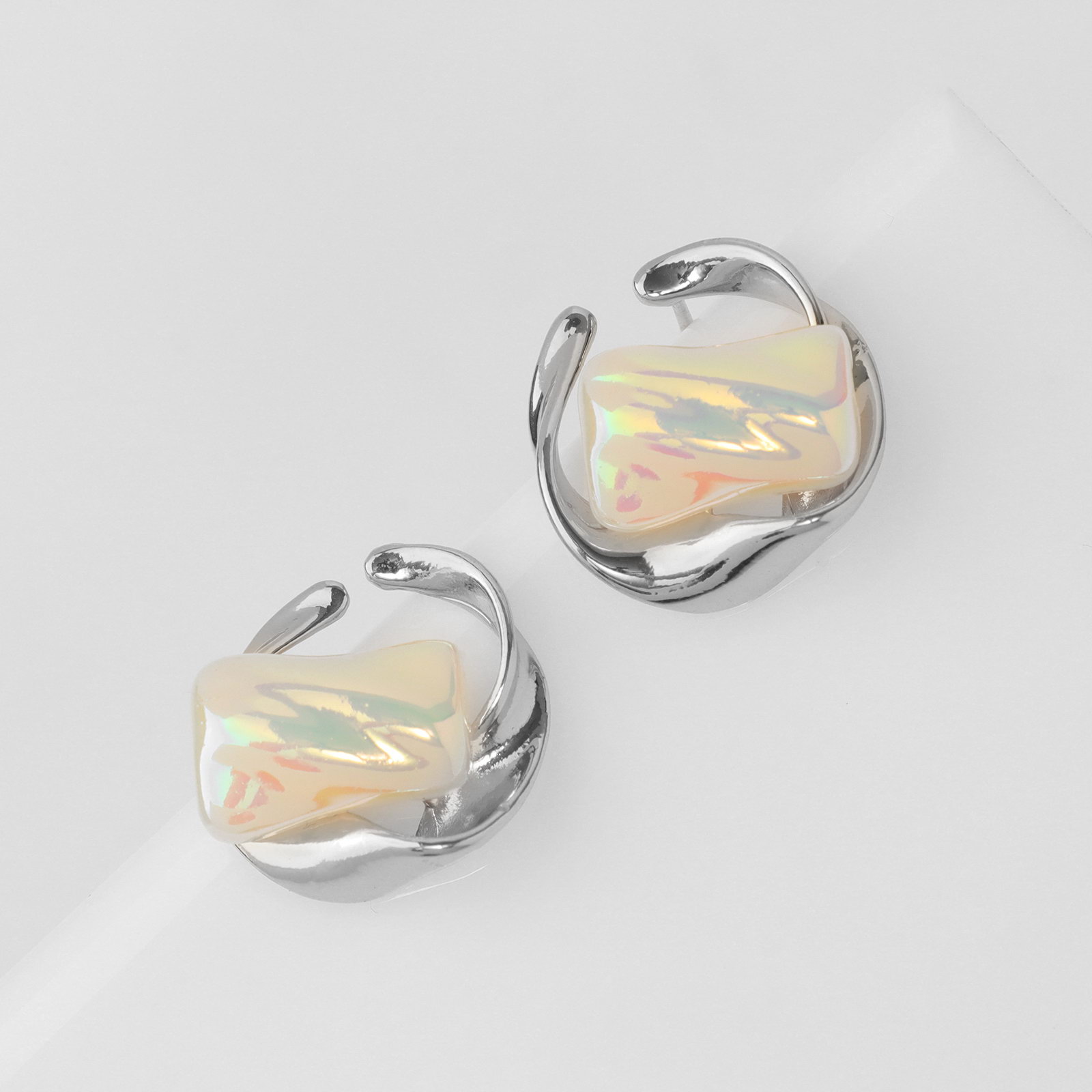 Серьги с жемчугом "Абстракция" волна, цвет серебро, 1.8x2x0.5 см., QF, Китай